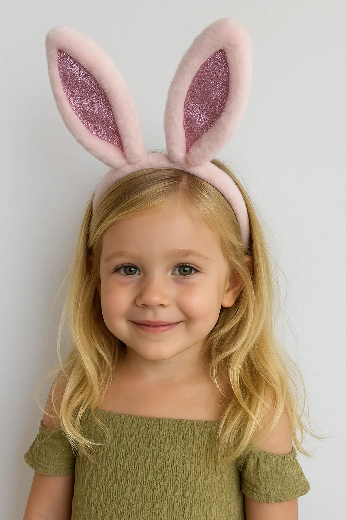 Pembe Renk Tavşan Kulağı Figürlü Peluş Taç
