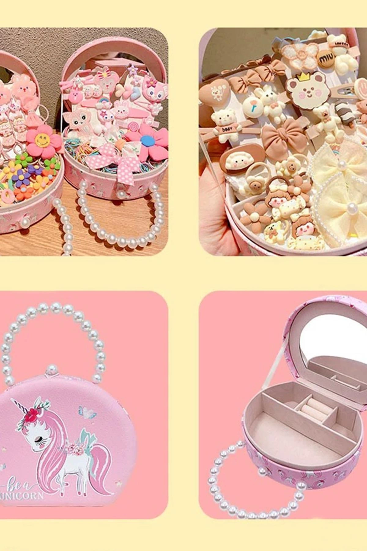 Pembe Renk Unicorn Figürlü İnci Detaylı Çanta Detaylı Takı Kutusu/Organizer