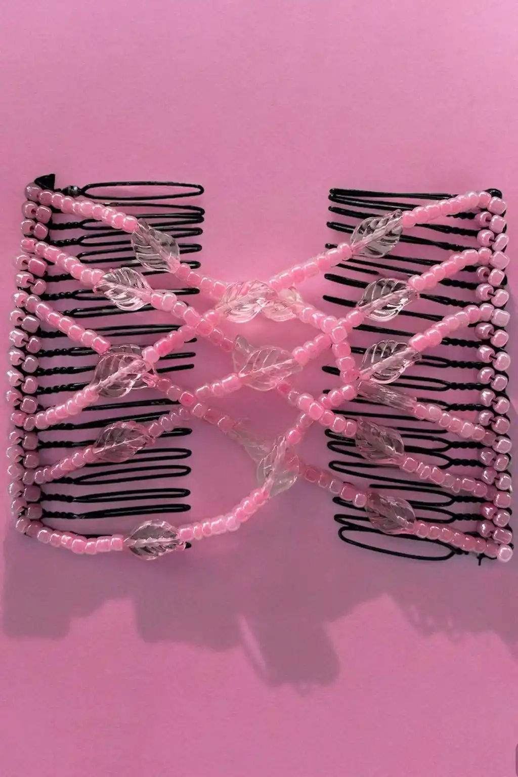 Pembe Renk Yaprak Figürlü Tel Tarak Toka