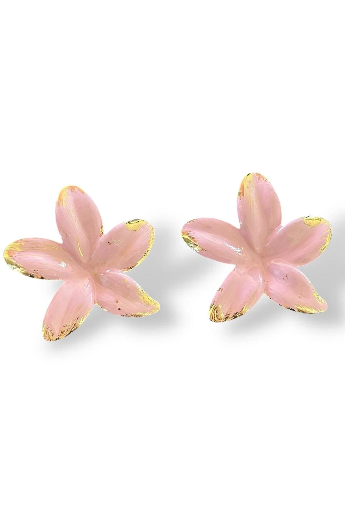 Pembe Ve Altın Renk Çiçek Detaylı Küpe (Çift)