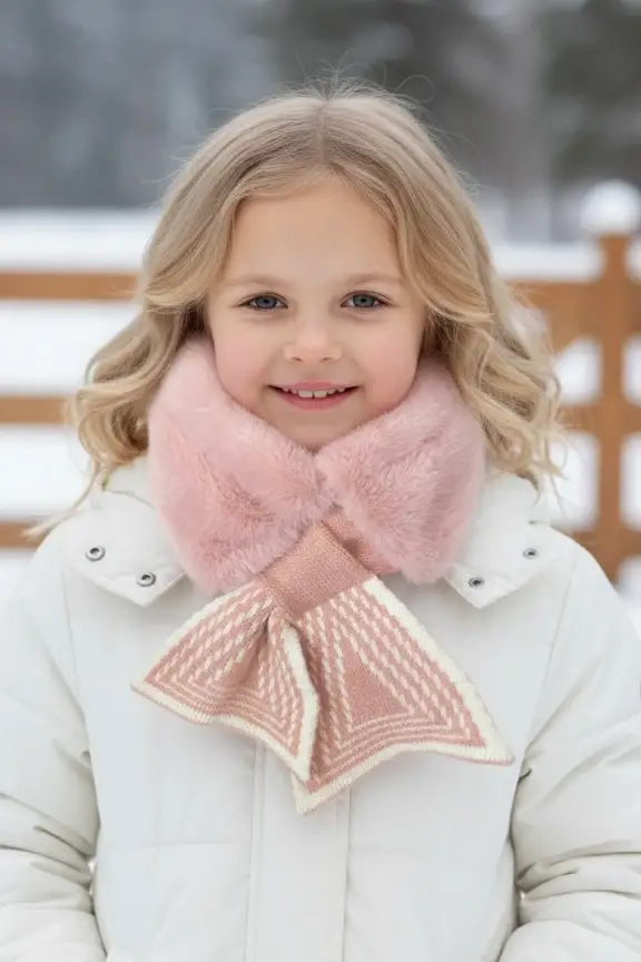 Pembe Ve Beyaz Renk Çocuk Peluş Atkı