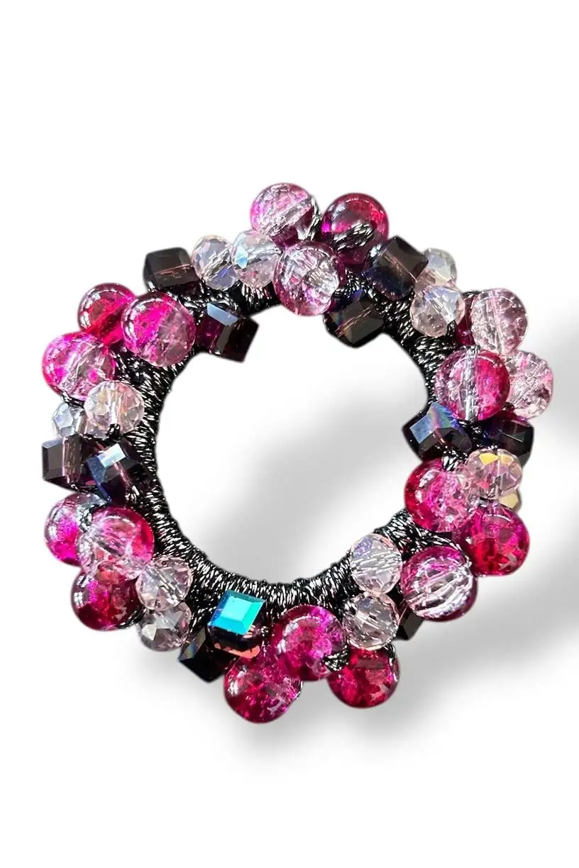 Pembe Ve Siyah Renk Boncuk Detaylı Lastik Toka