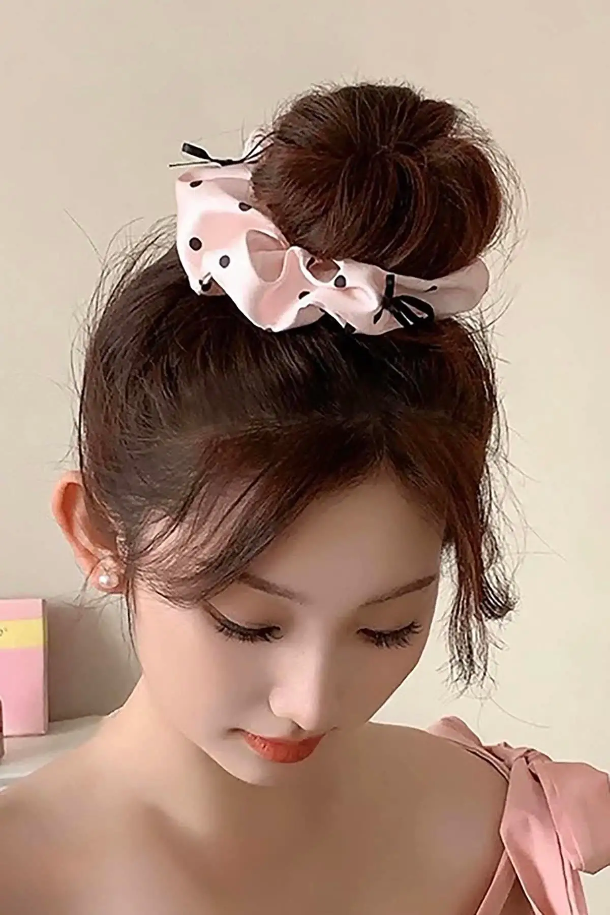 Pembe Ve Siyah Renk Puantiye Detaylı Kurdele Figürlü Simit Toka