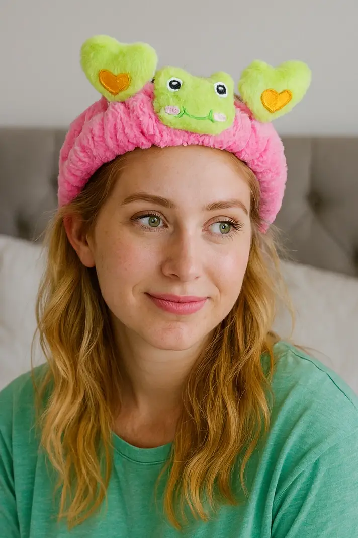 Açık Pembe Ve Yeşil Renk Kurbağa Figürlü Peluş Saç Bandı