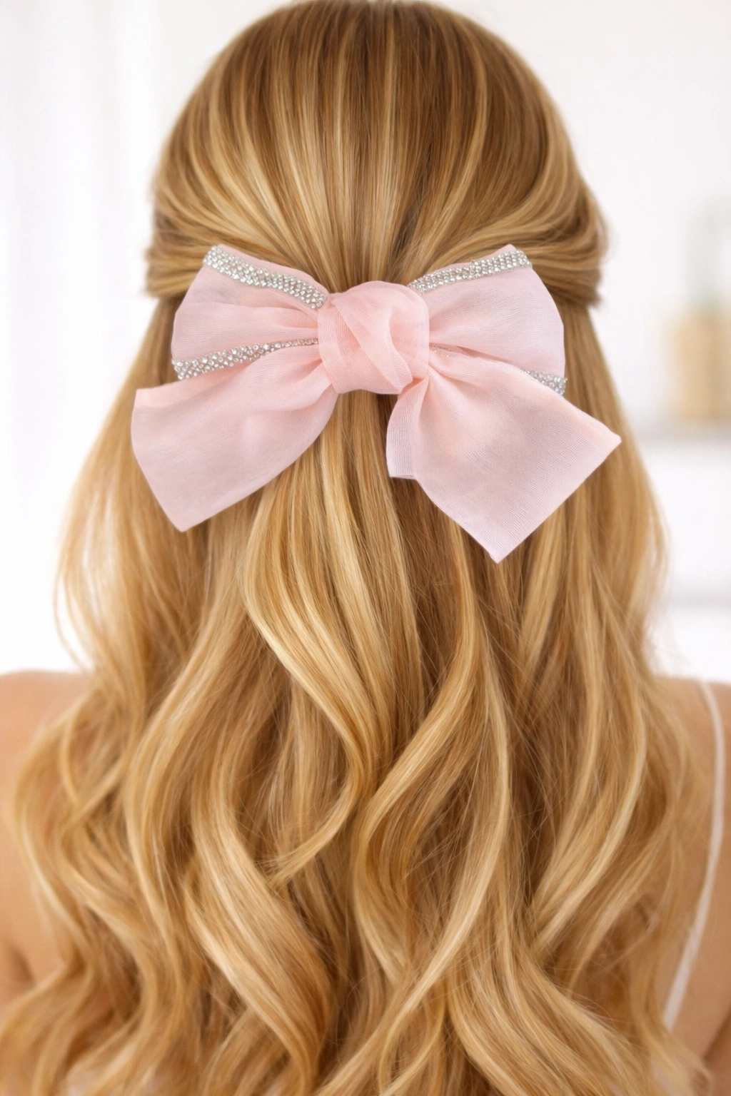 Pudra Pembe Renk Taşlı Kurdele Otomat Toka