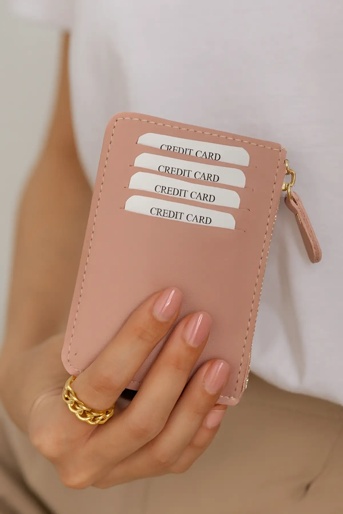 Pudra Renk Deri Kadın Cüzdan/ Kartlık