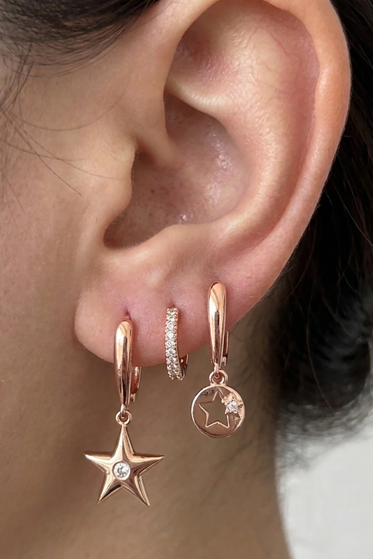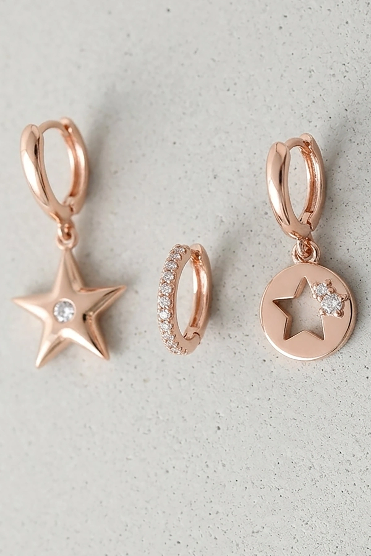 Rose Gold Renk Yıldız Figürlü 3'lü YSX Küpe Set