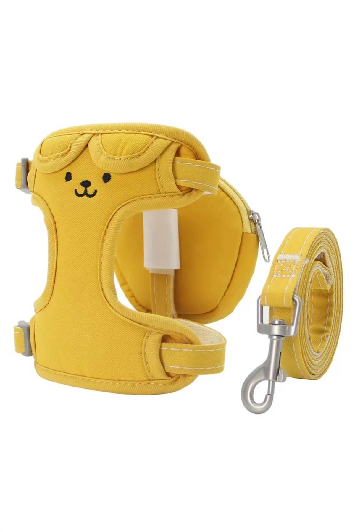 Sarı Renk Ayıcık Figürlü Çanta Detaylı Bel Göğüs Ayarlanabilir Kedi/Köpek Tasma