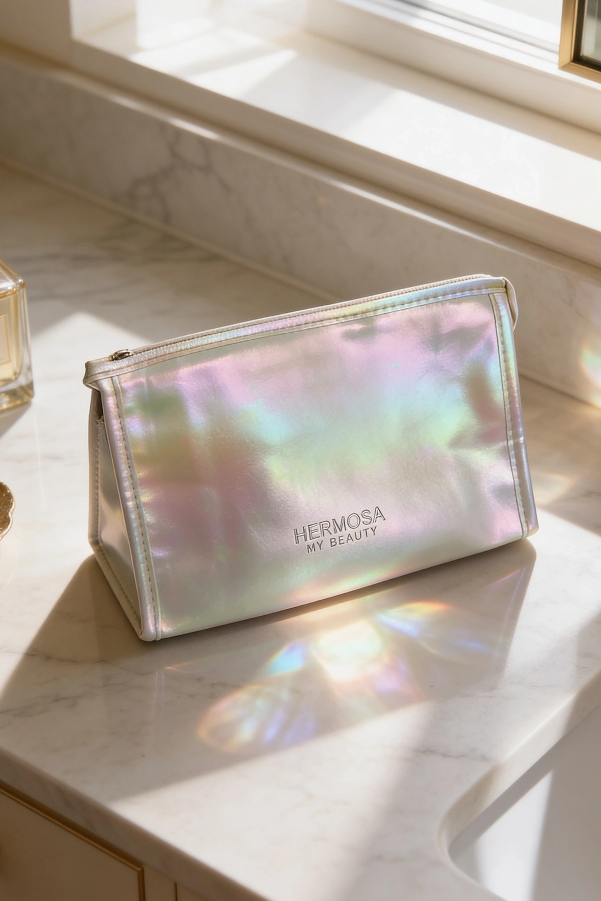 Sarı Renk Hologramlı Makyaj Çantası