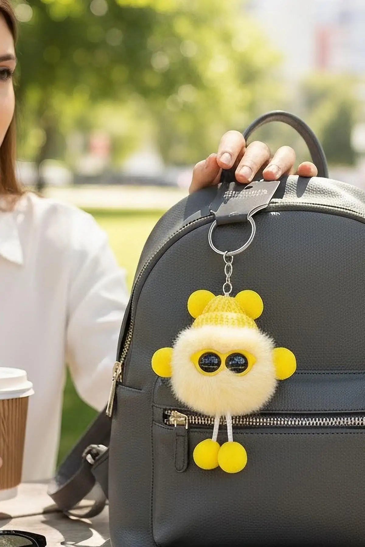 Beyaz Renk Peluş Canavar Figürlü Anahtarlık
