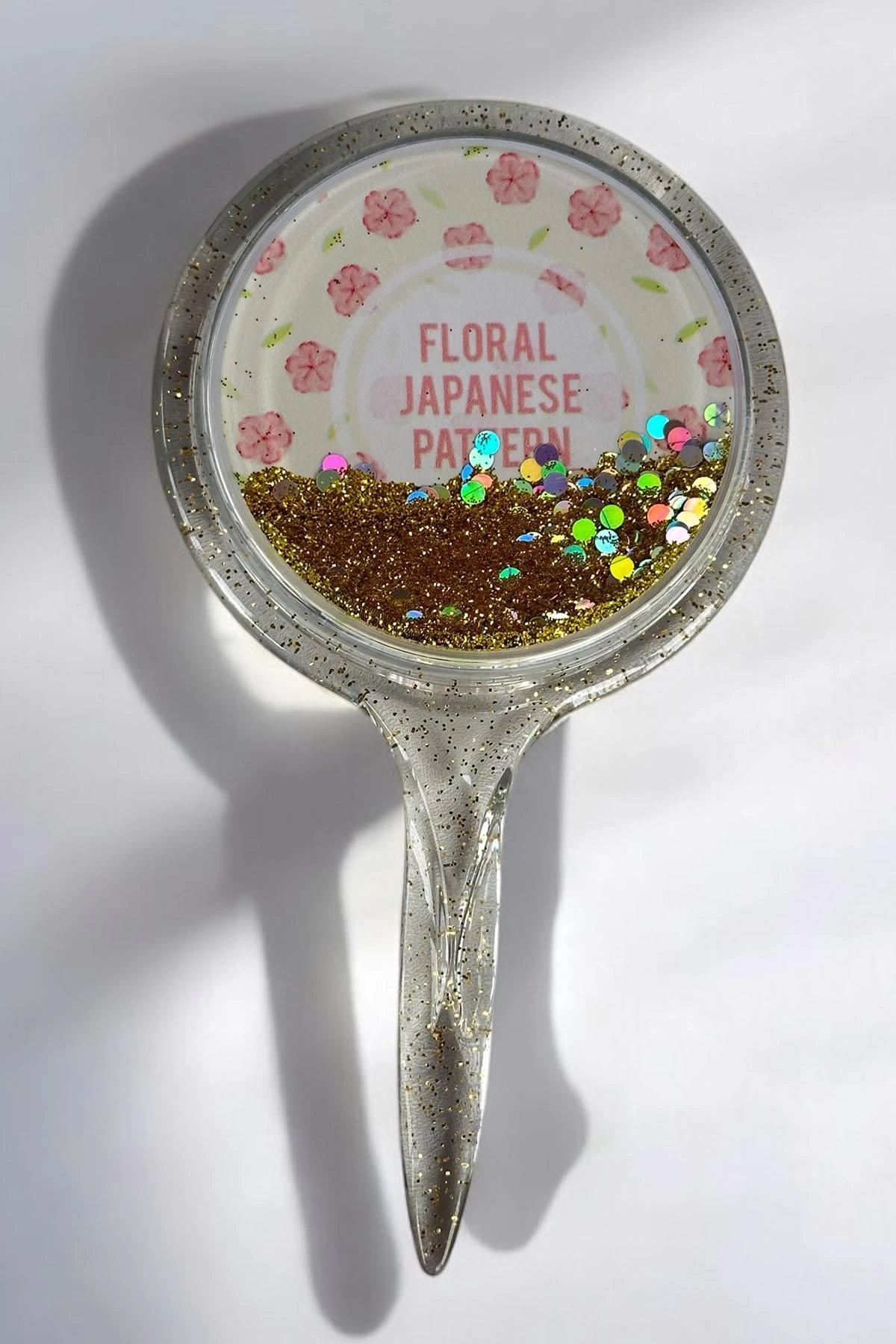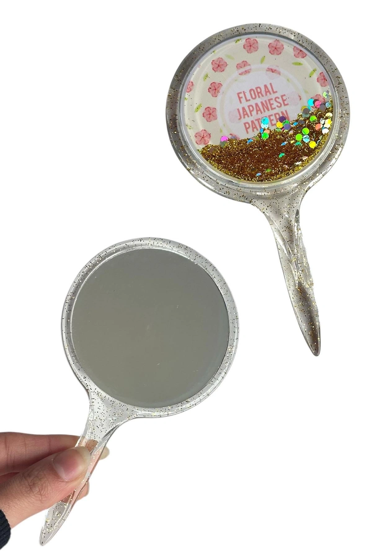 Sarı Renk Pul Detaylı Çiçek Figürlü El Aynası