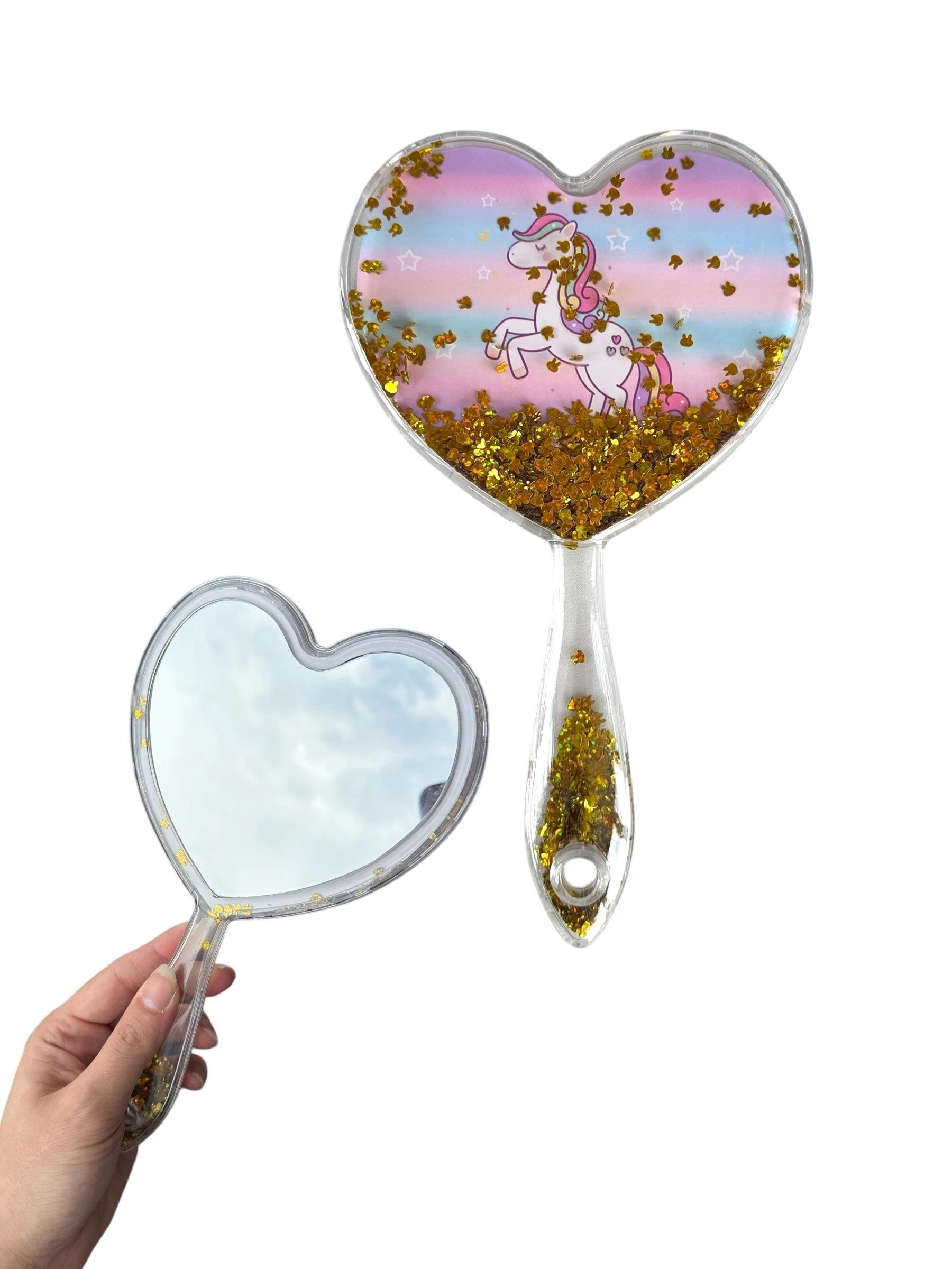 Sarı Renk Pul Detaylı Unicorn Figürlü El Aynası