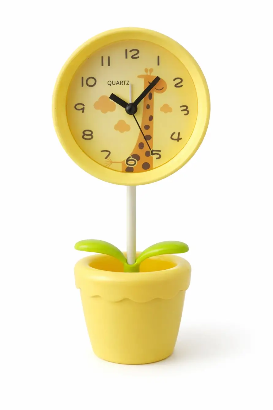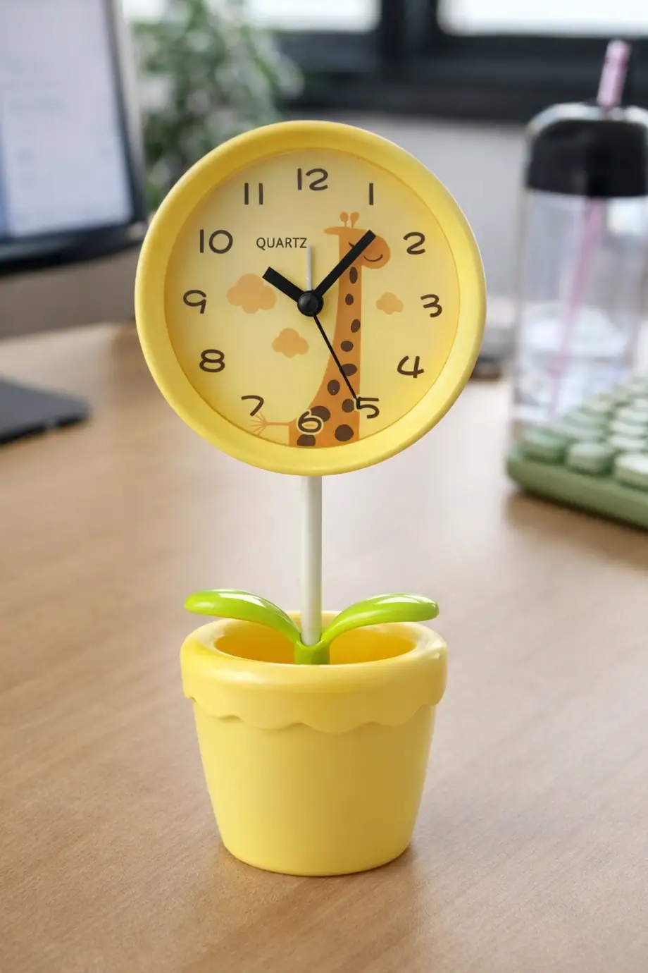 Sarı Renk Saksı Figürlü Alarmlı Masa Saati