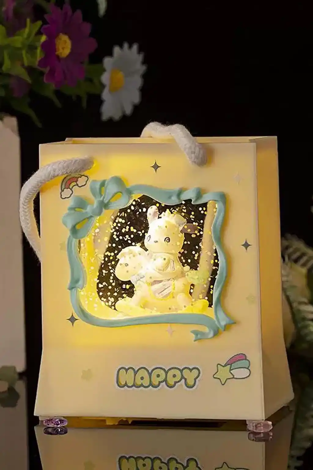Sarı Renk Tavşan Figürlü Askı Detaylı Müziklı Işıklı Kar Küresi