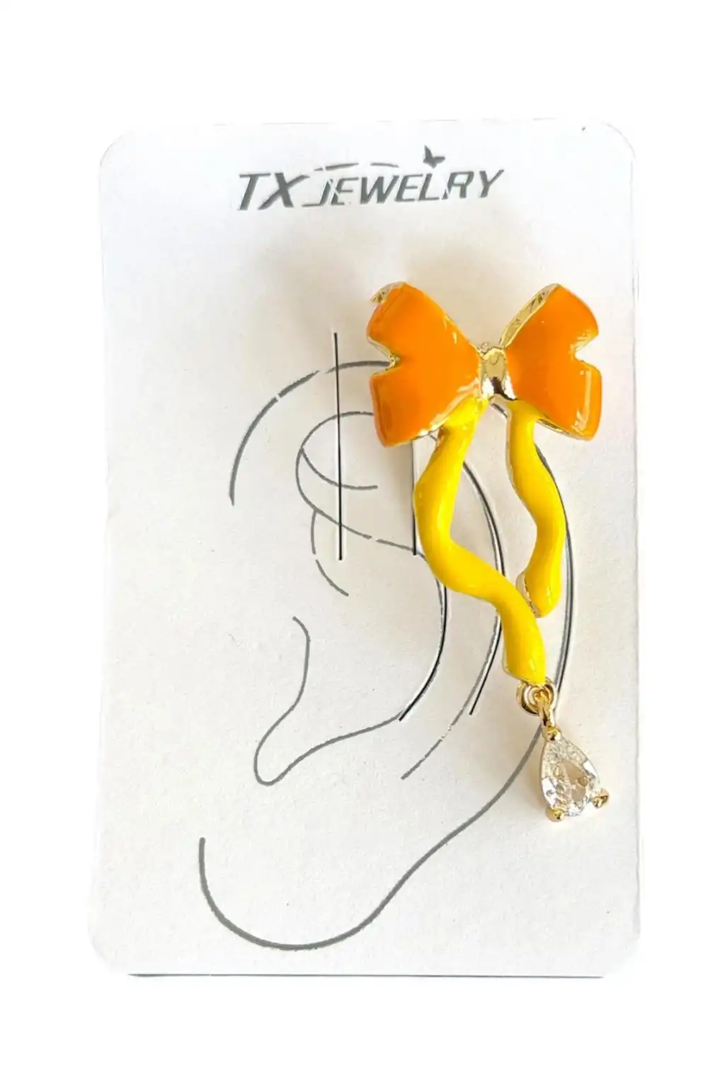 Sarı Ve Turuncu Renk Kurdele Figürlü 14K Altın Kaplama TX Ear Cuff (Tek)