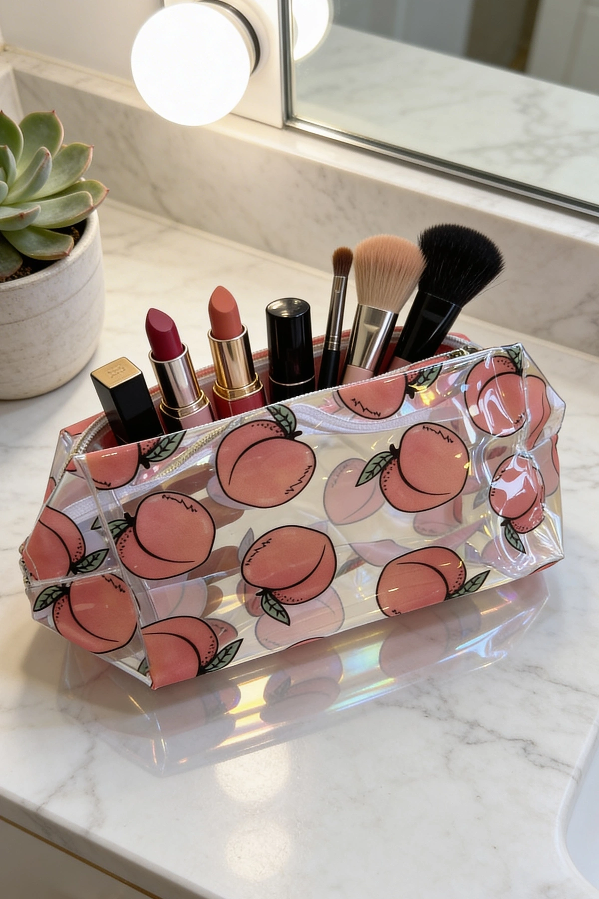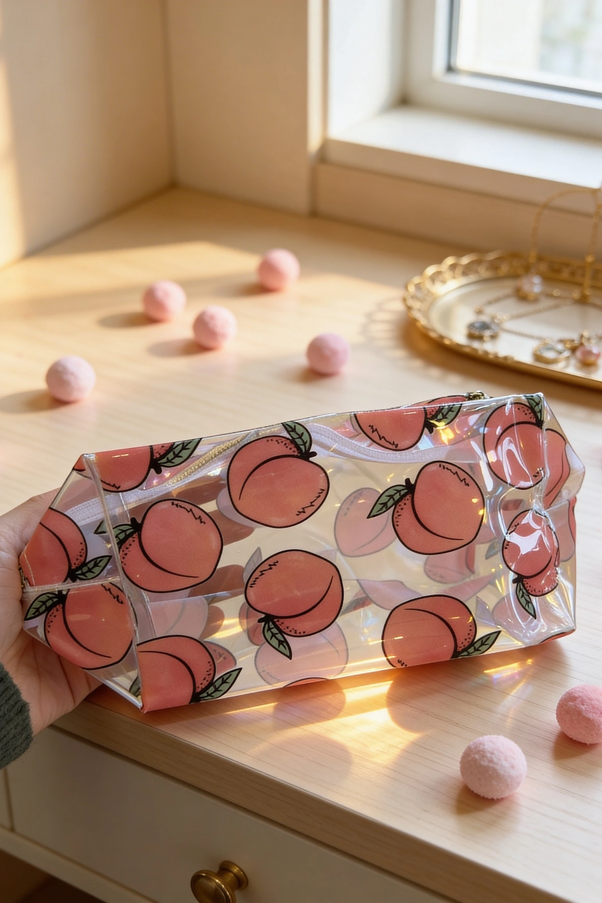 Şeftali Figürlü Şeffaf Makyaj Çantası