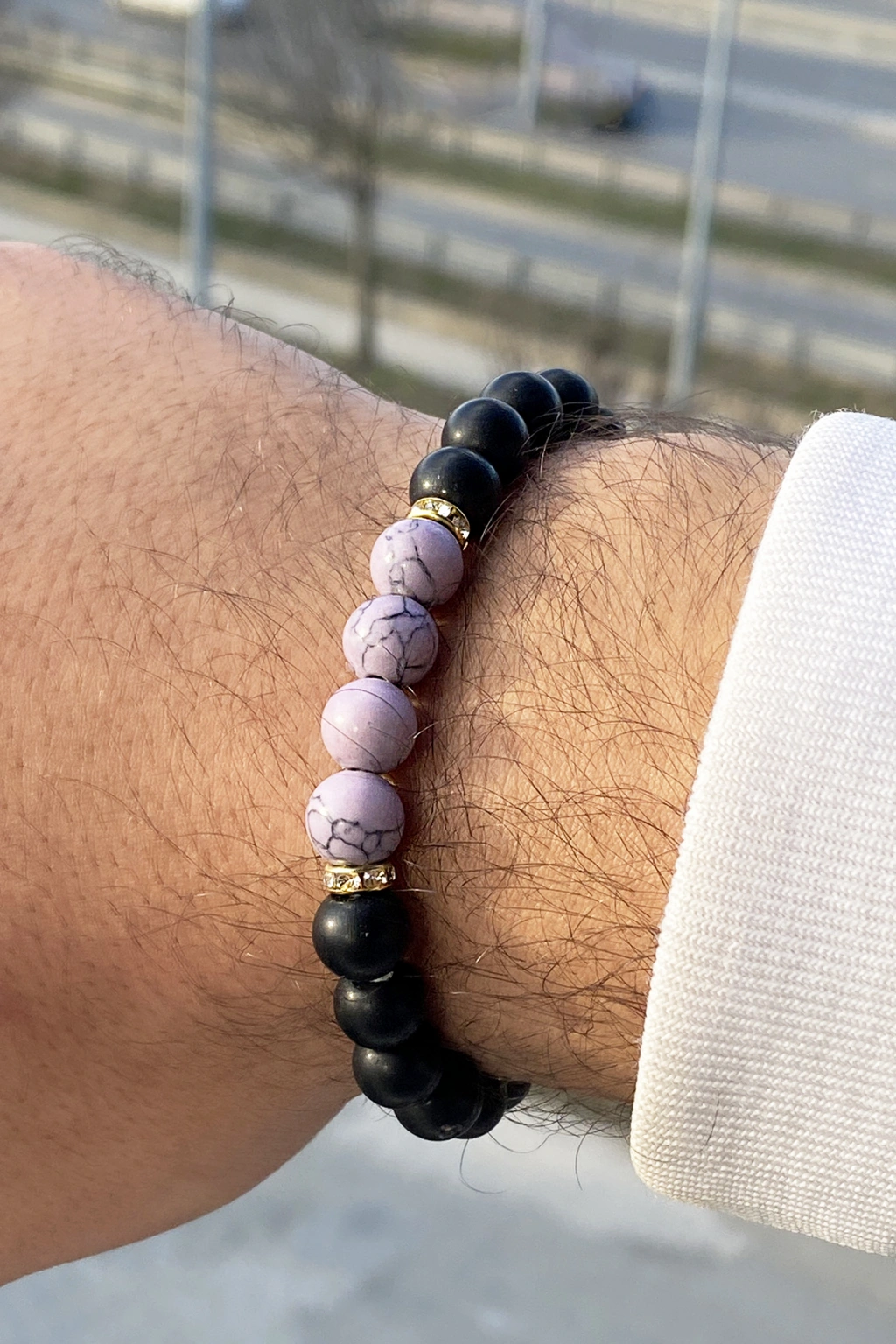 Siyah Ve Beyaz Renk Boncuk Detaylı Erkek Bileklik