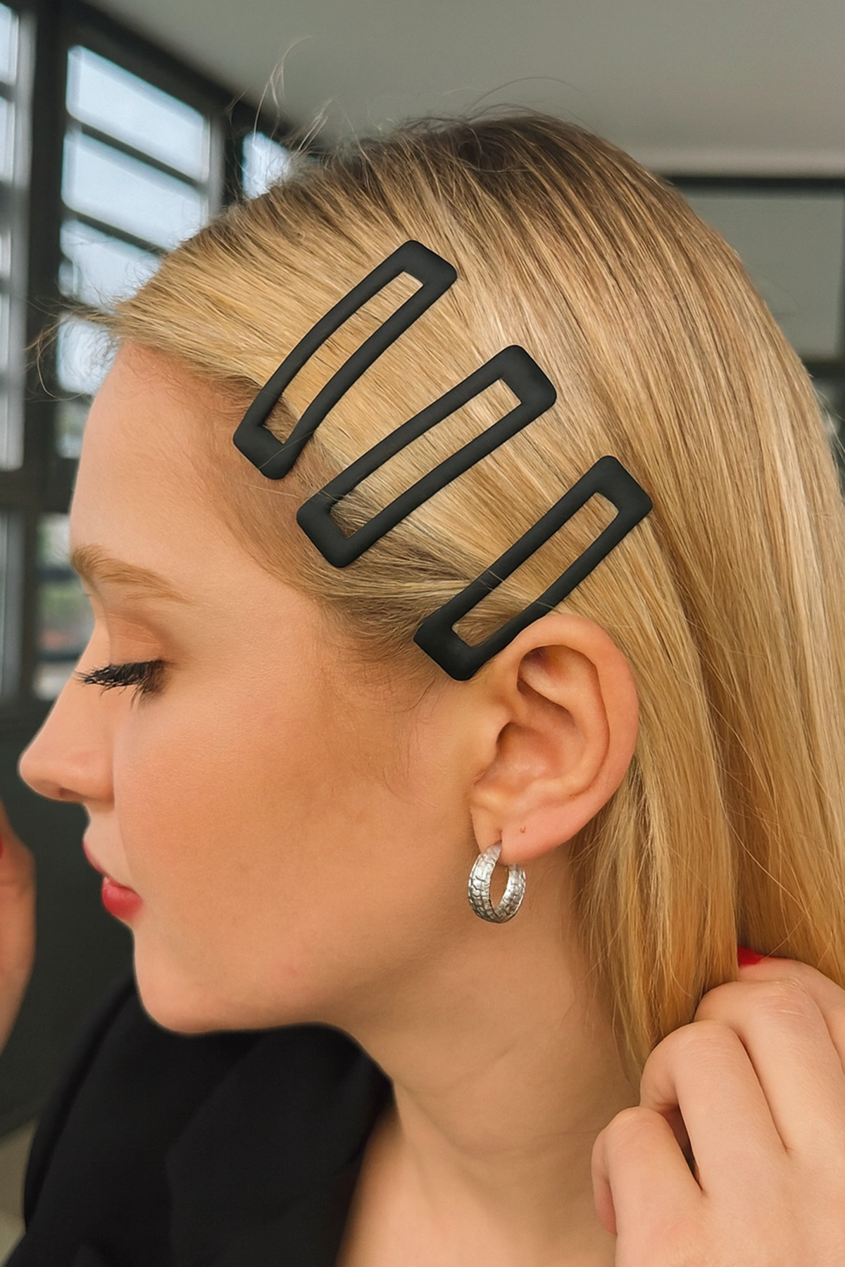 Siyah Renk 3'lü Yan Toka Set