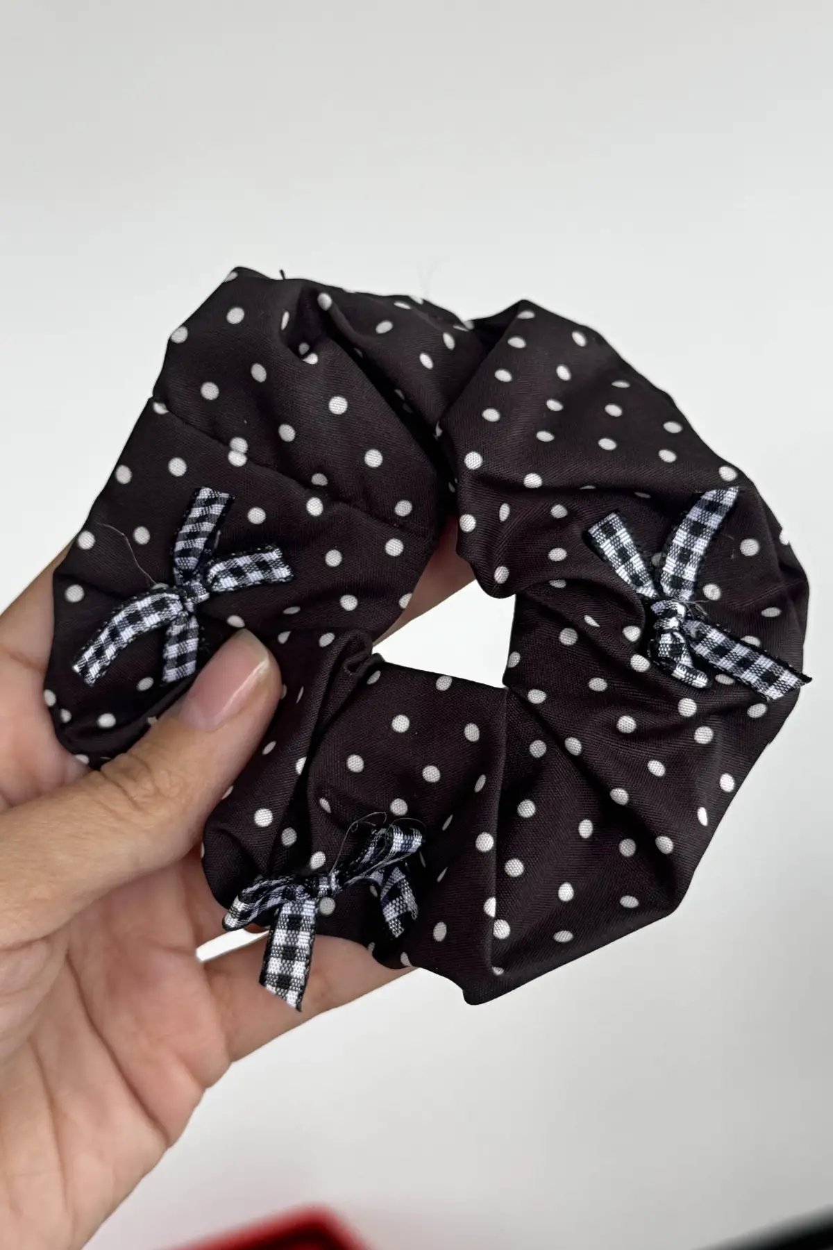Siyah Renk Beyaz Renk Kurdele Ve Puantiye Figürlü Simit Toka