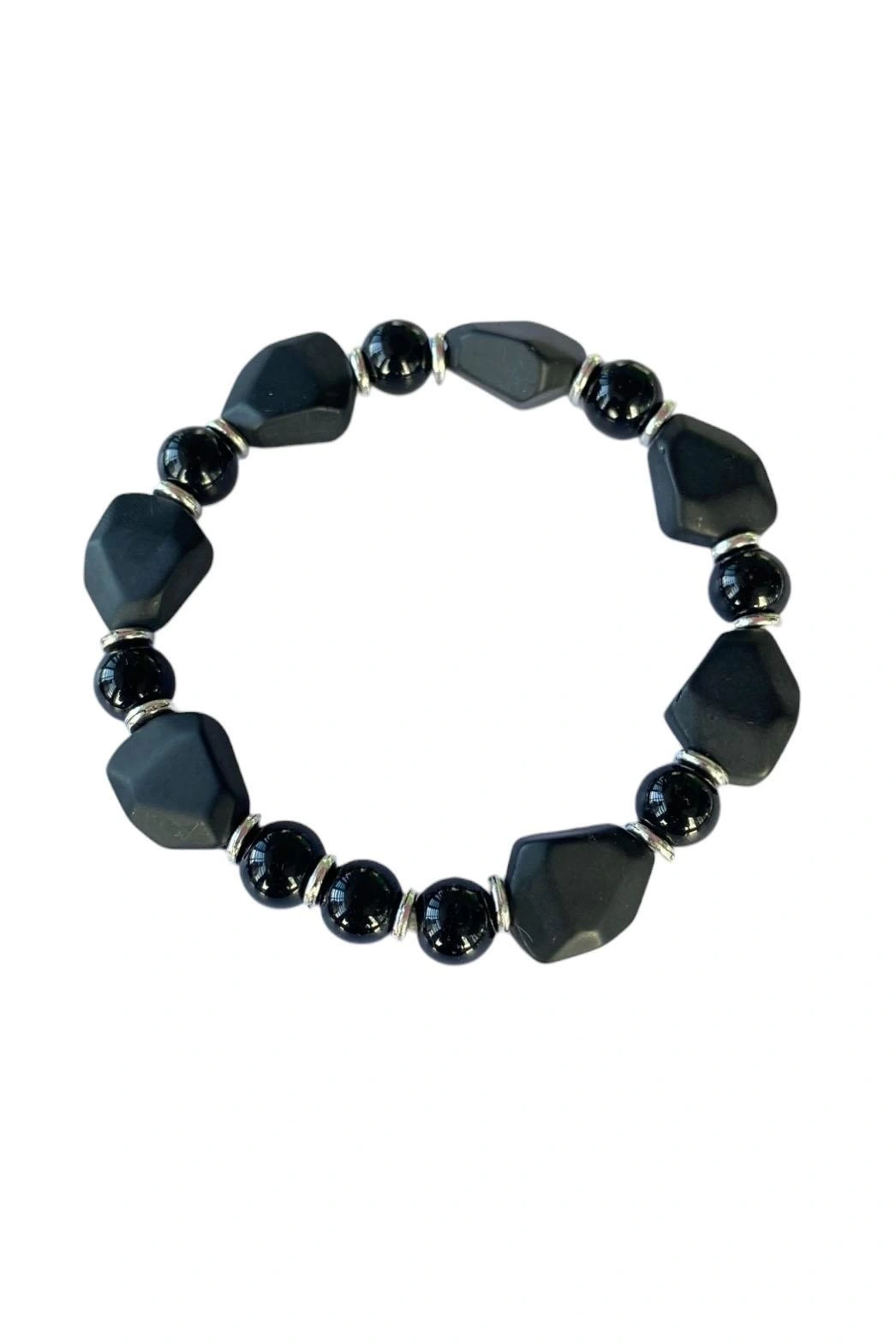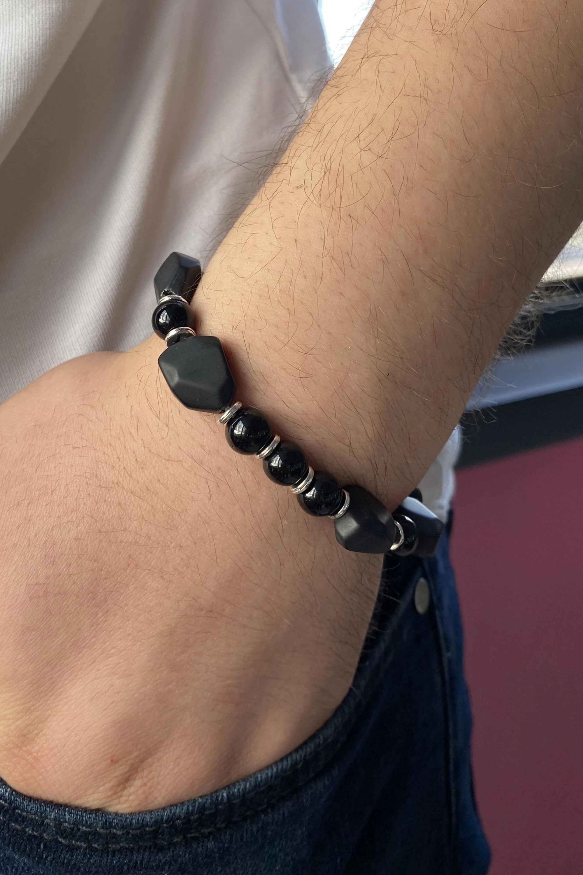 Siyah Renk Boncuk Detaylı Erkek Bileklik