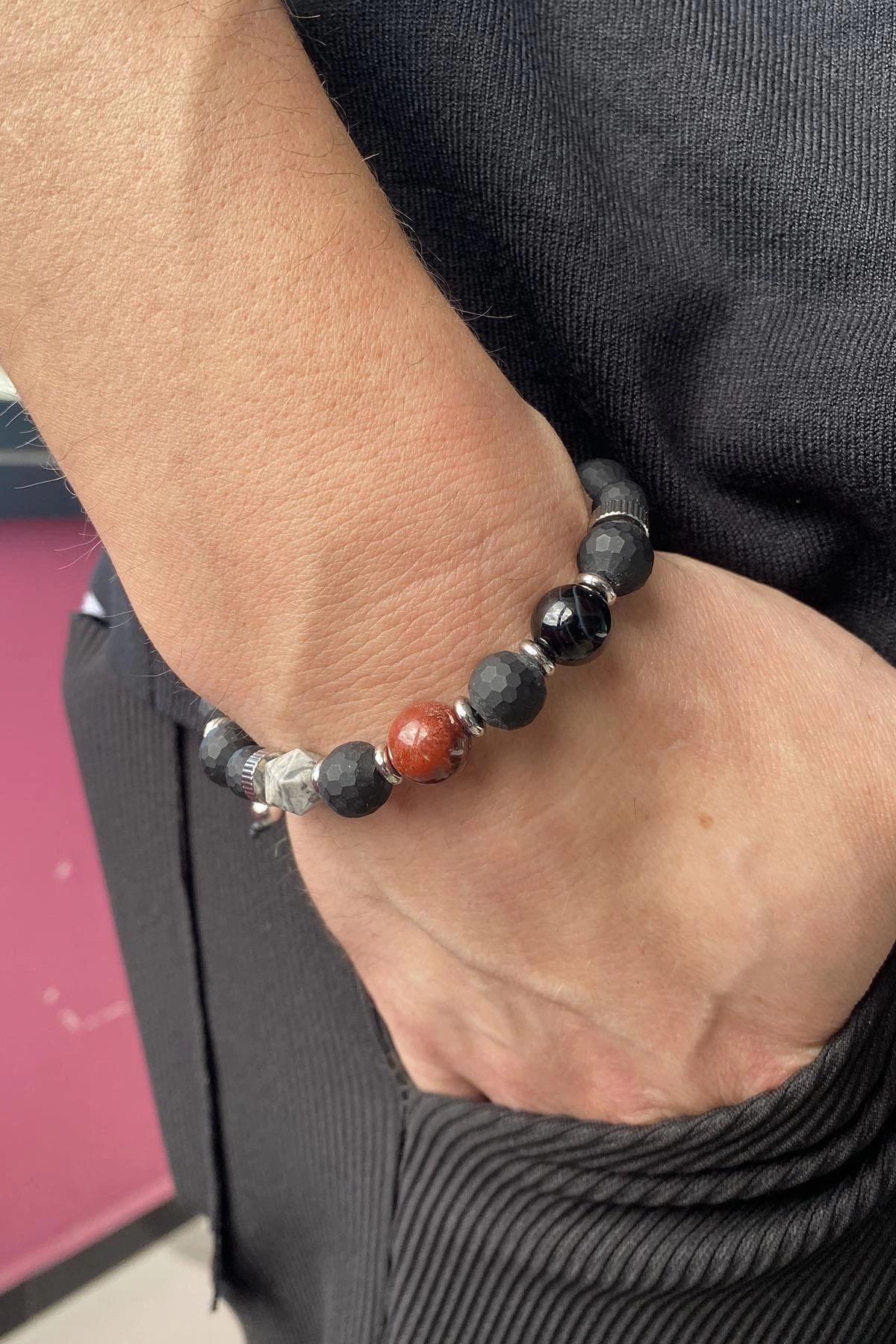 Siyah Renk Boncuk Detaylı Erkek Bileklik