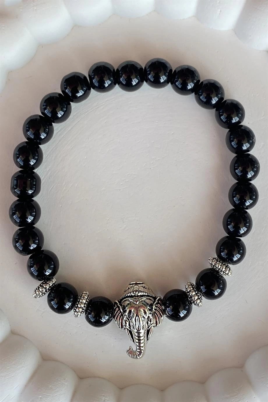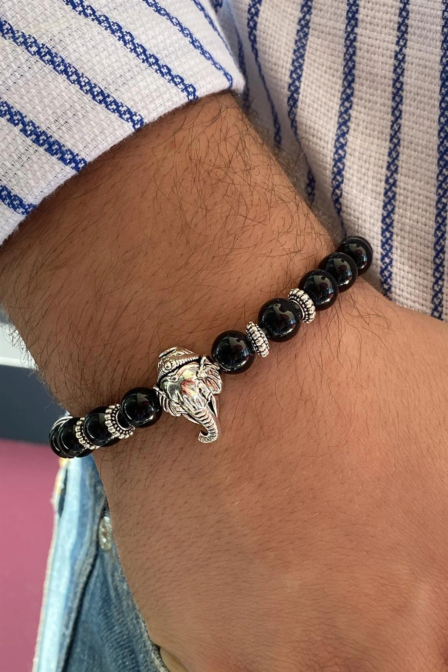 Siyah Renk Boncuk Detaylı Fil Figürlü Erkek Bileklik