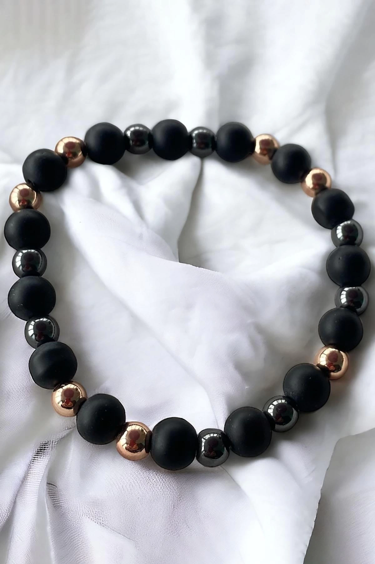 Siyah Renk Boncuk Detaylı Hematit Erkek Bileklik