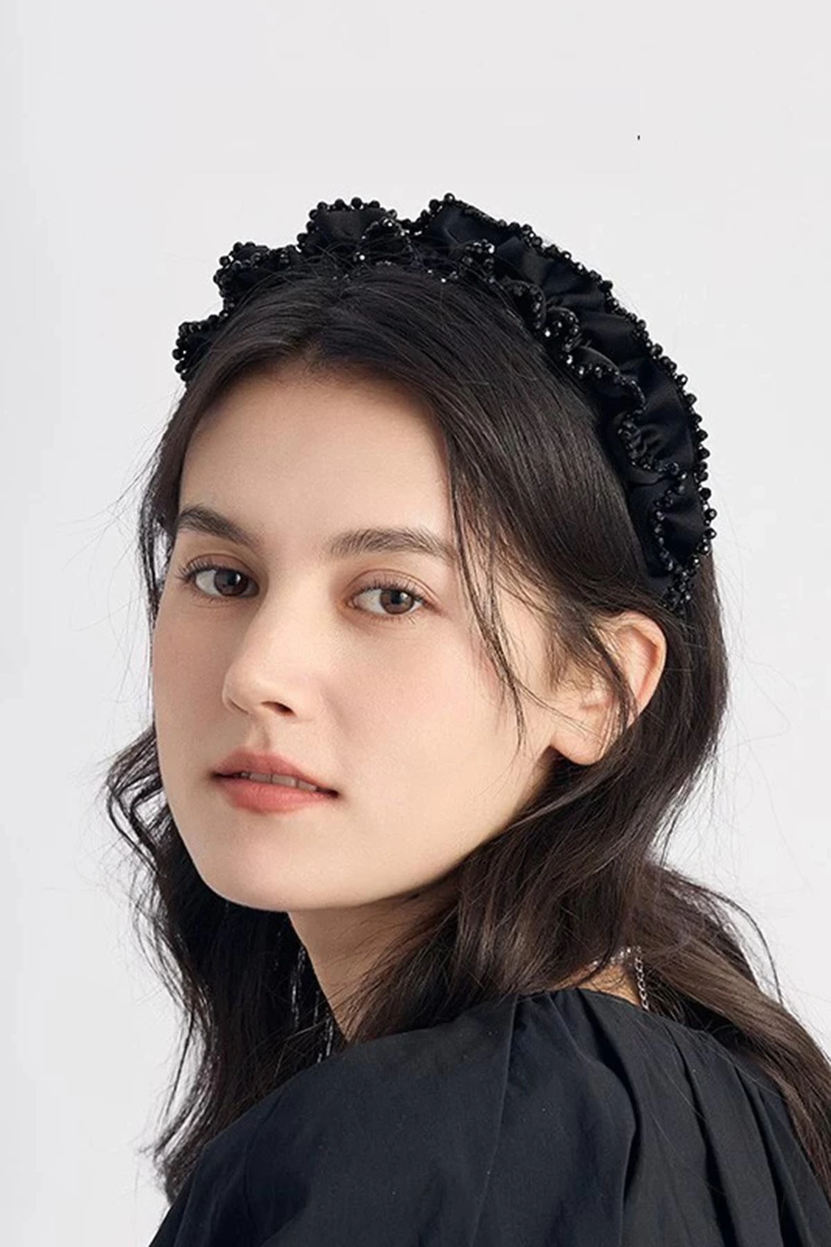 Siyah Renk Boncuk Detaylı Taç