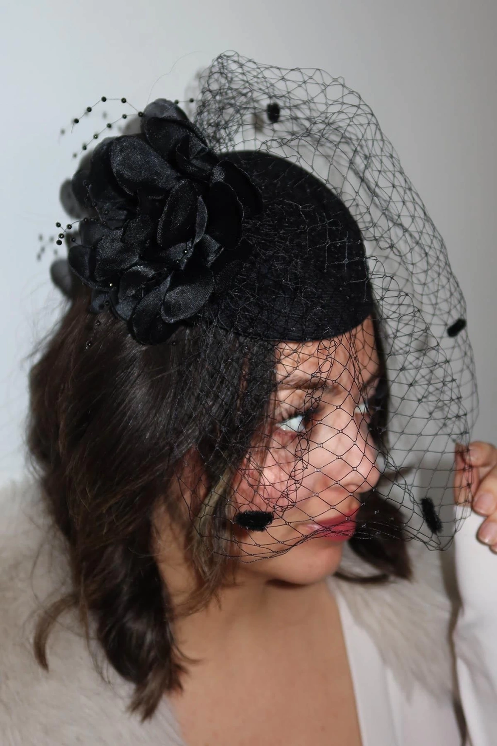 Siyah Renk Çiçek Detaylı Nikah Şapkası/Vualet Şapka