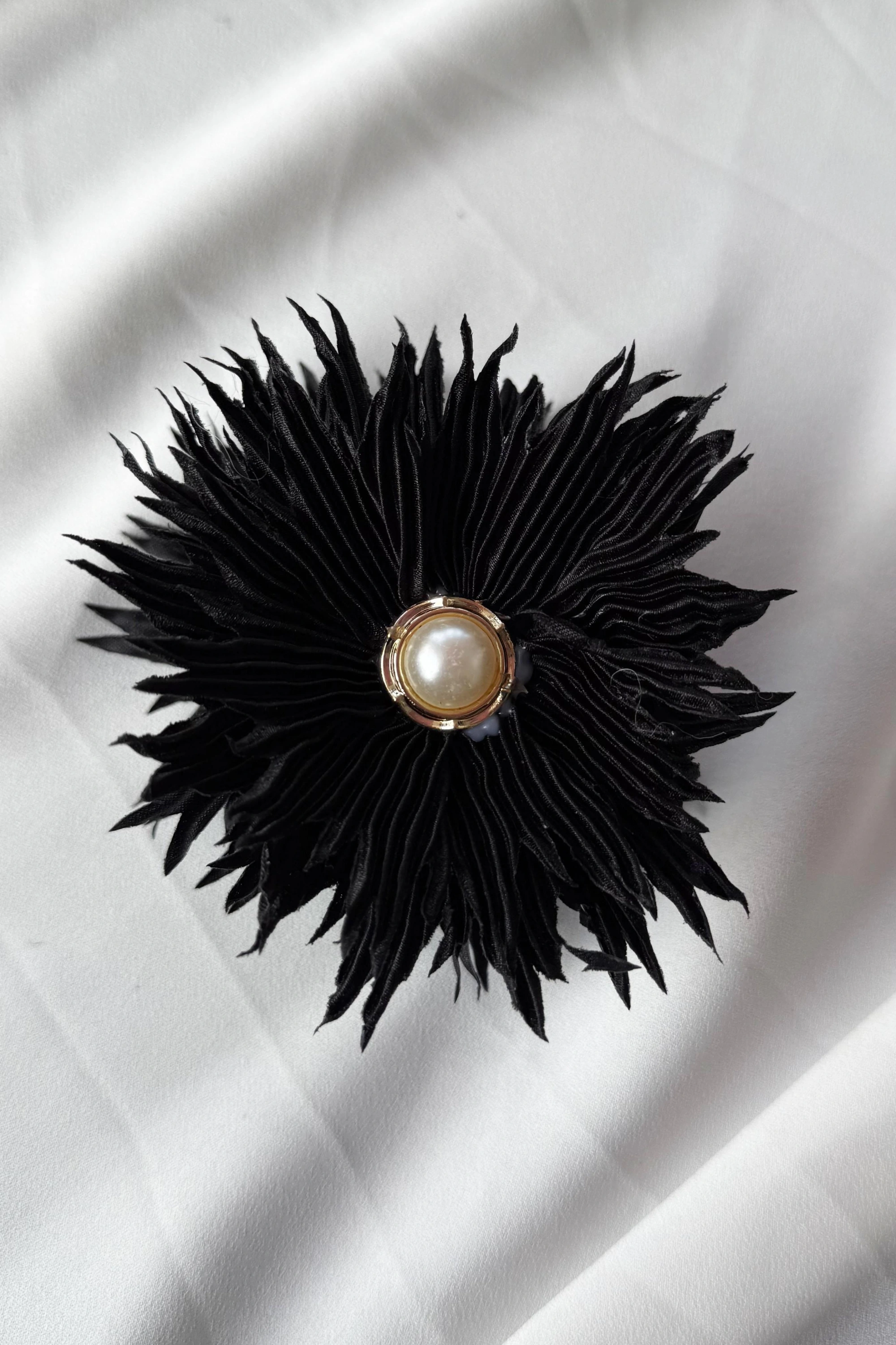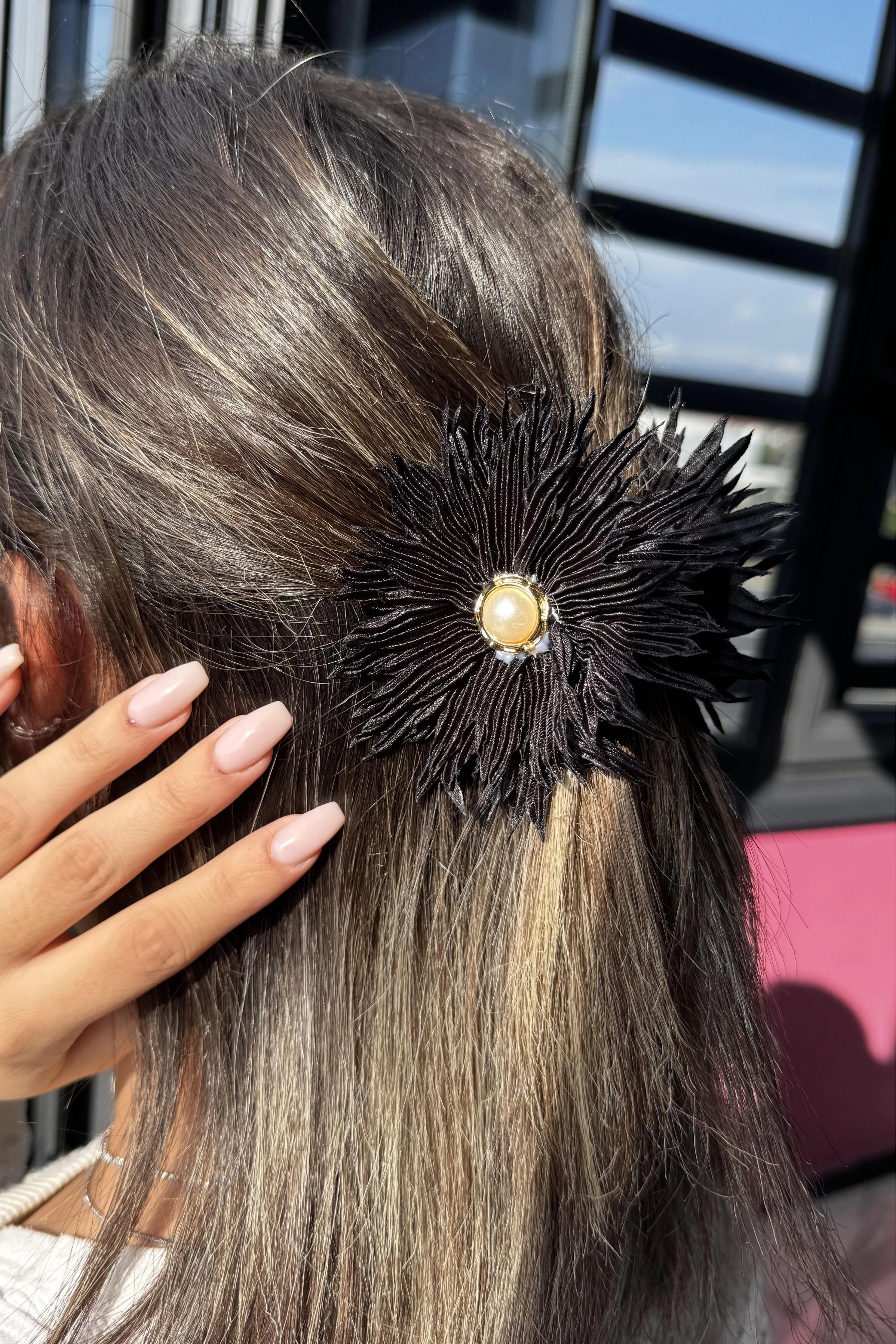 Siyah Renk Çiçek Figürlü İnci Detaylı Mandal Toka
