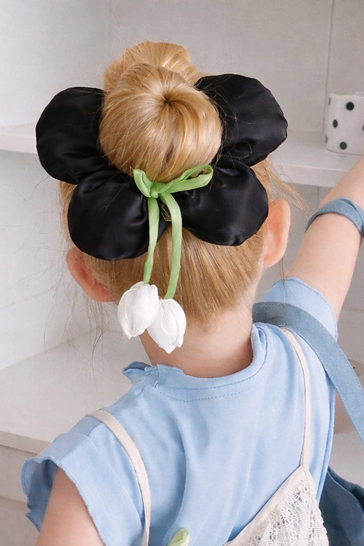 Siyah Renk Çiçek Figürlü Sallantılı Simit Toka