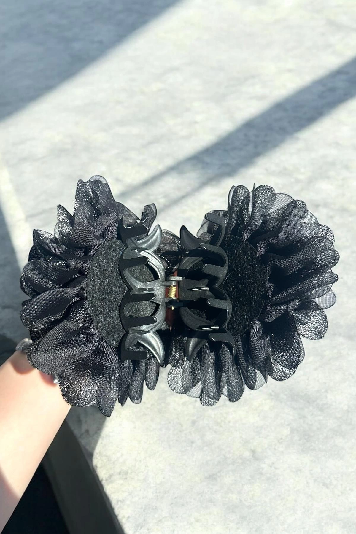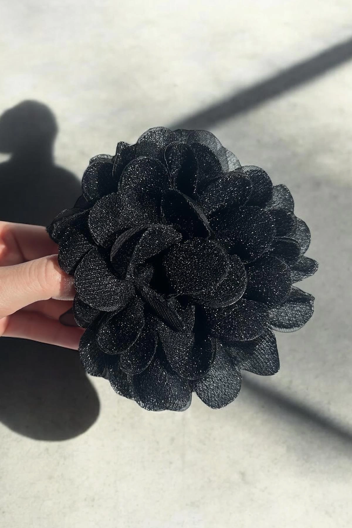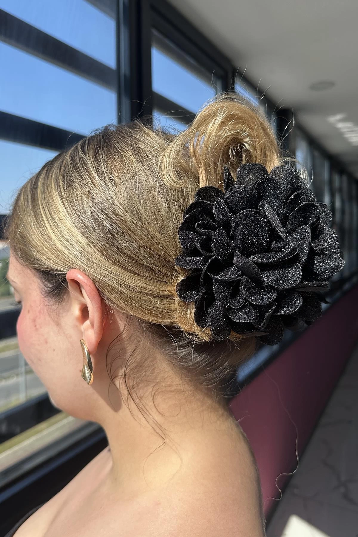 Siyah Renk Çiçek Figürlü Sim Detaylı Mandal Toka
