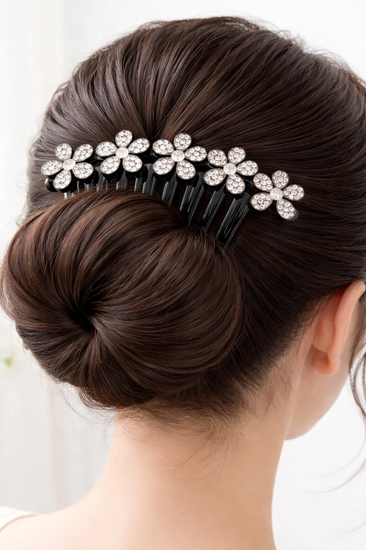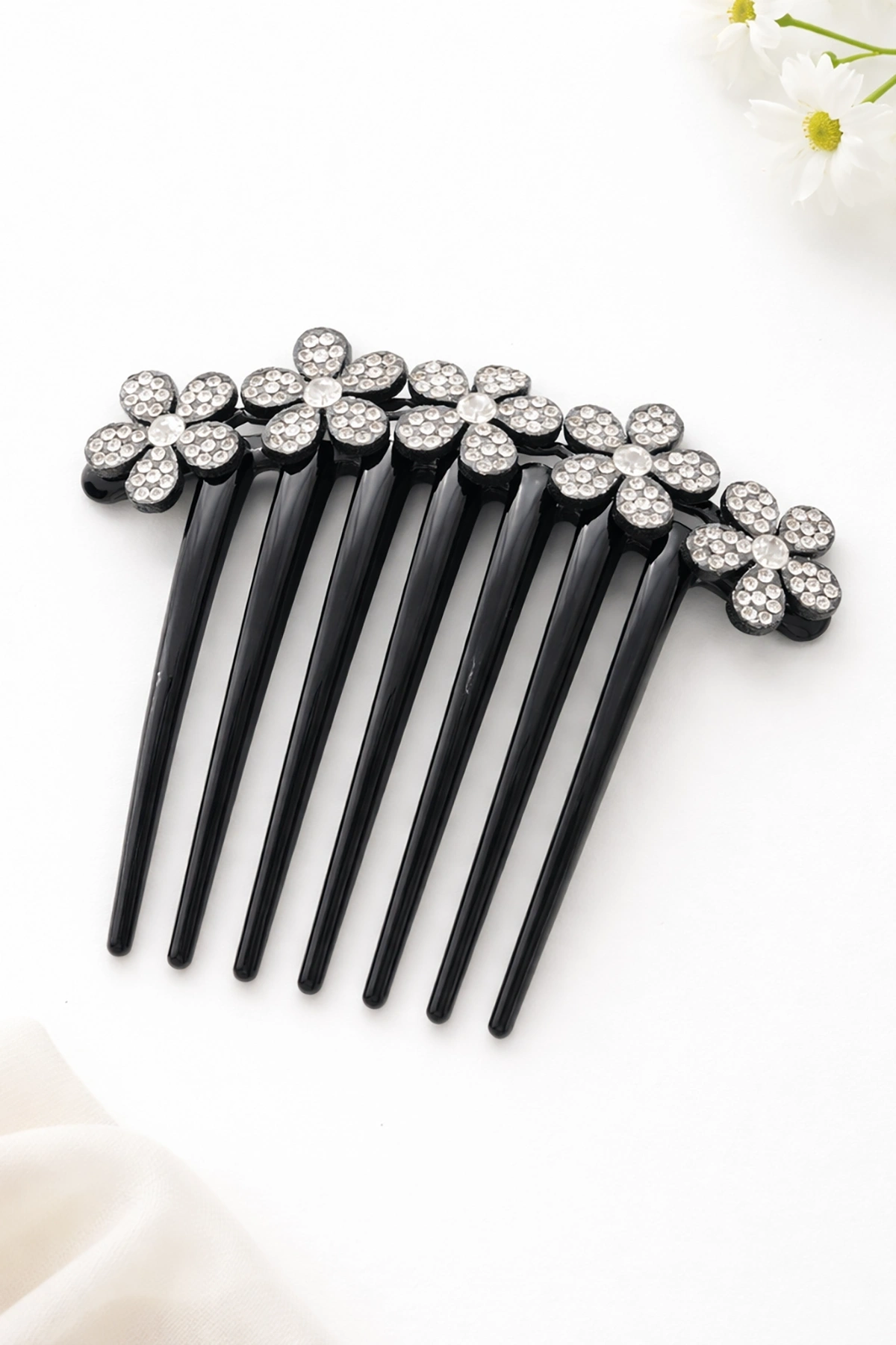 Siyah Renk Çiçek Figürlü Taş Detaylı Tarak Toka