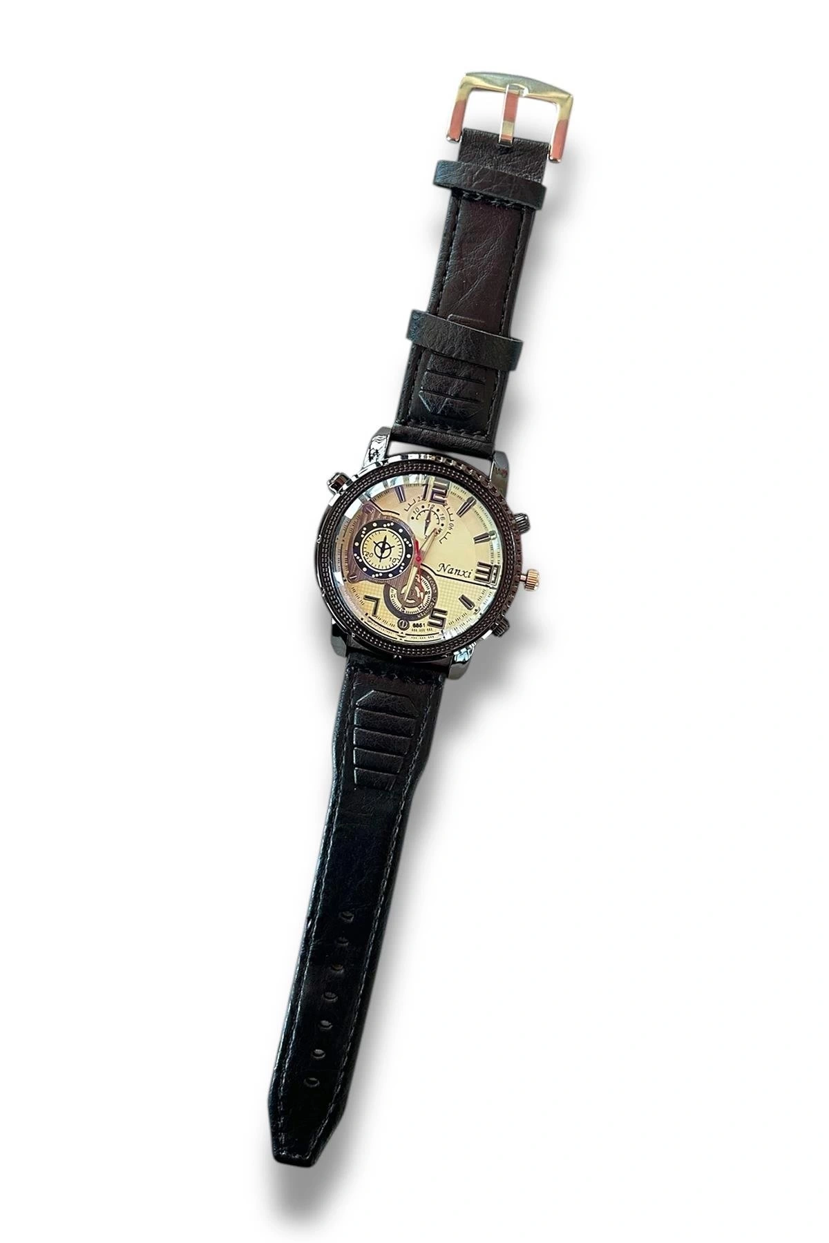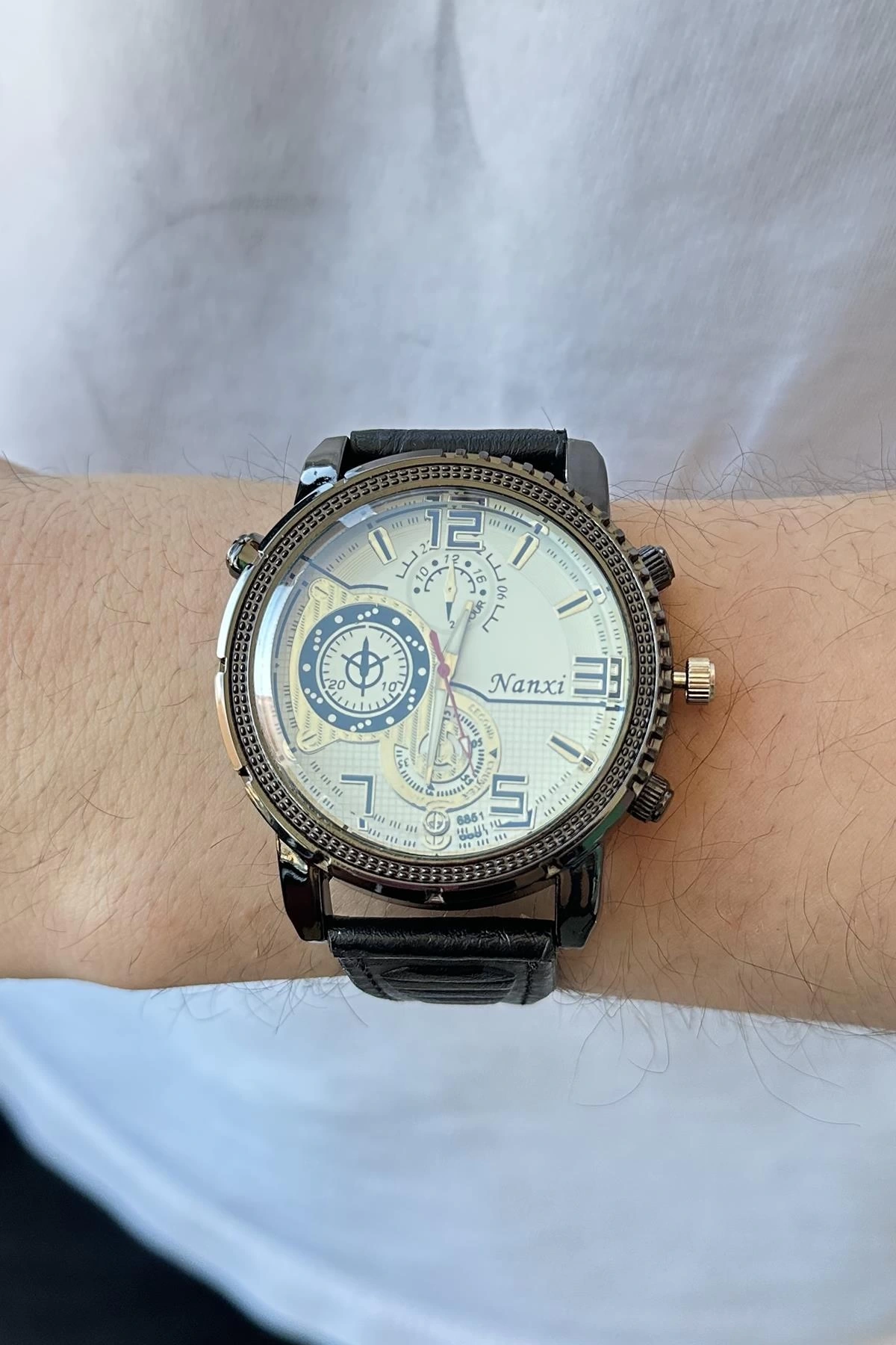 Siyah Renk Deri Kordonlu Çelik Erkek Saat