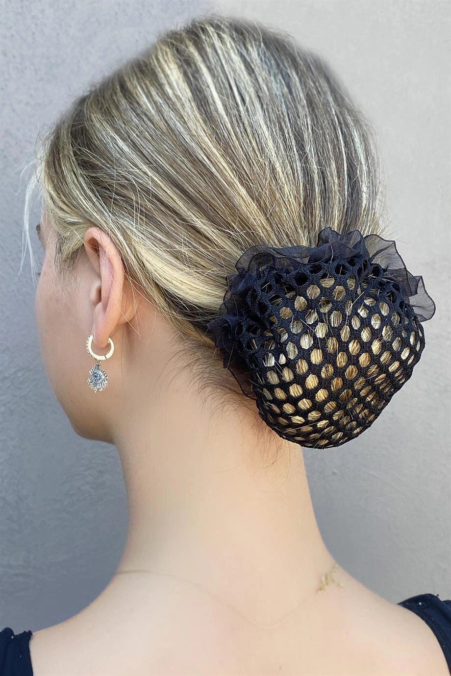 Siyah Renk File Detaylı Topuz Toka
