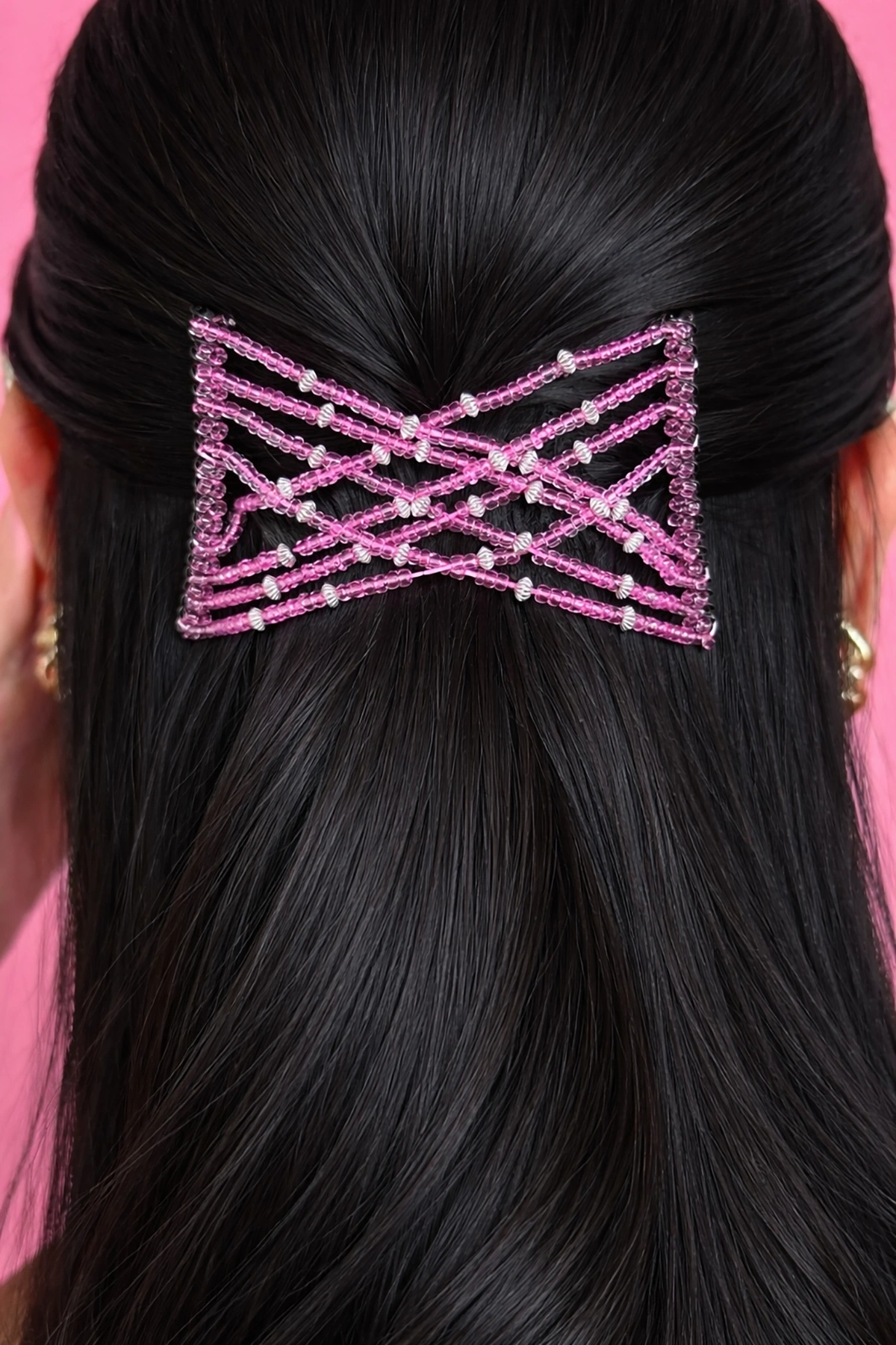 Siyah Renk Fuşya Boncuk Detaylı Tel Tarak Toka