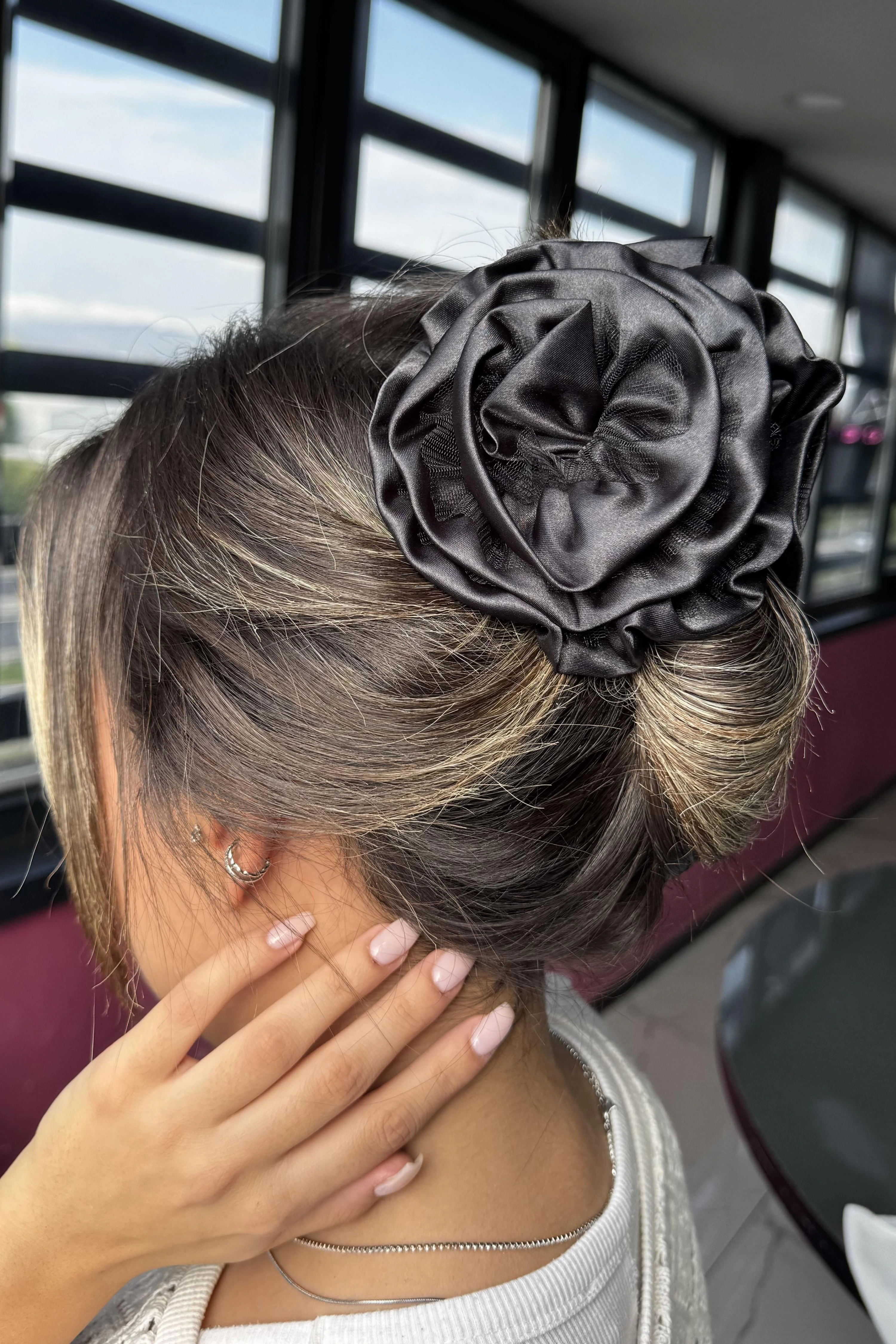Siyah Renk Gül Detaylı Mandal Toka