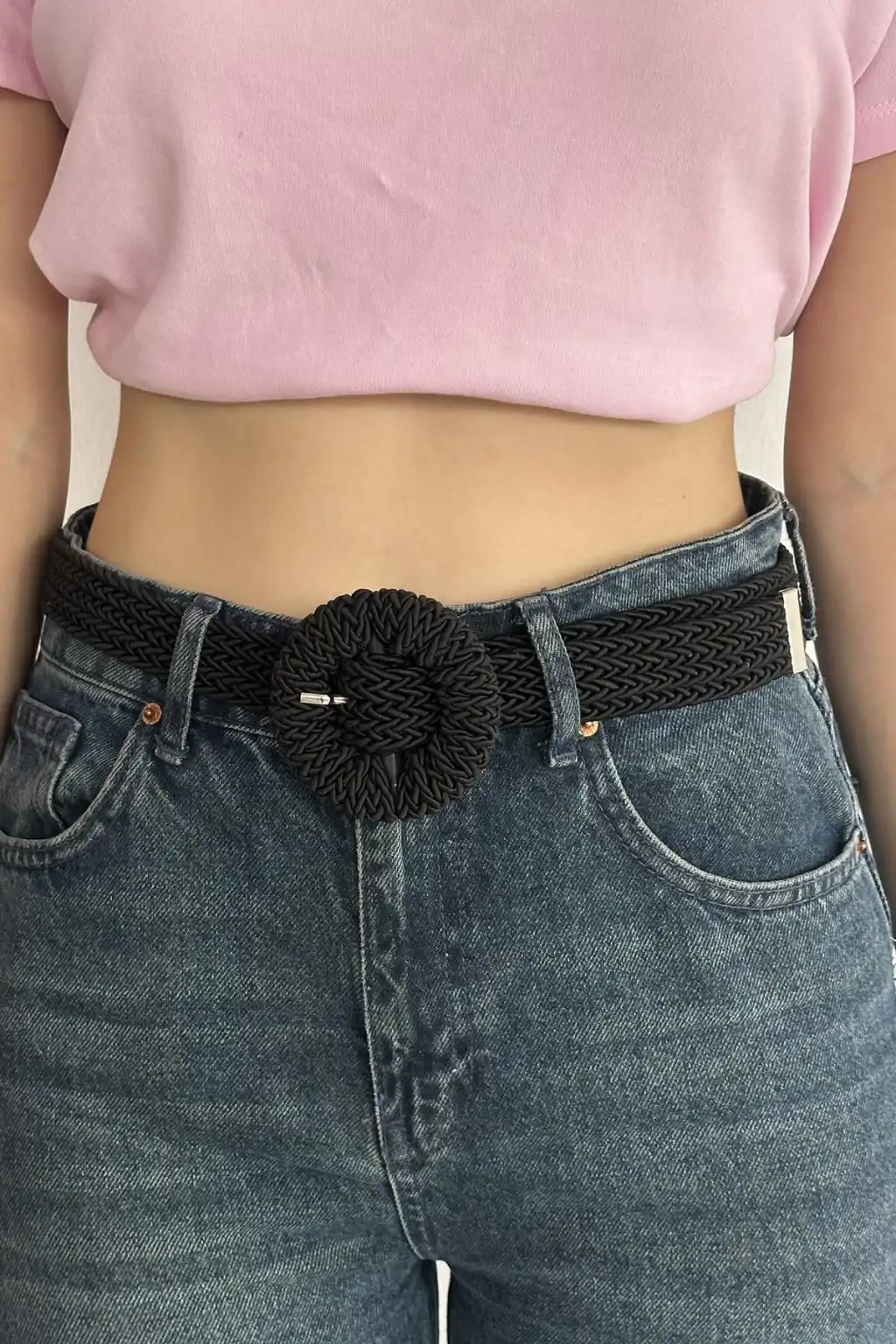 Altın Renk Leopar Desenli Kadın Deri Kemer