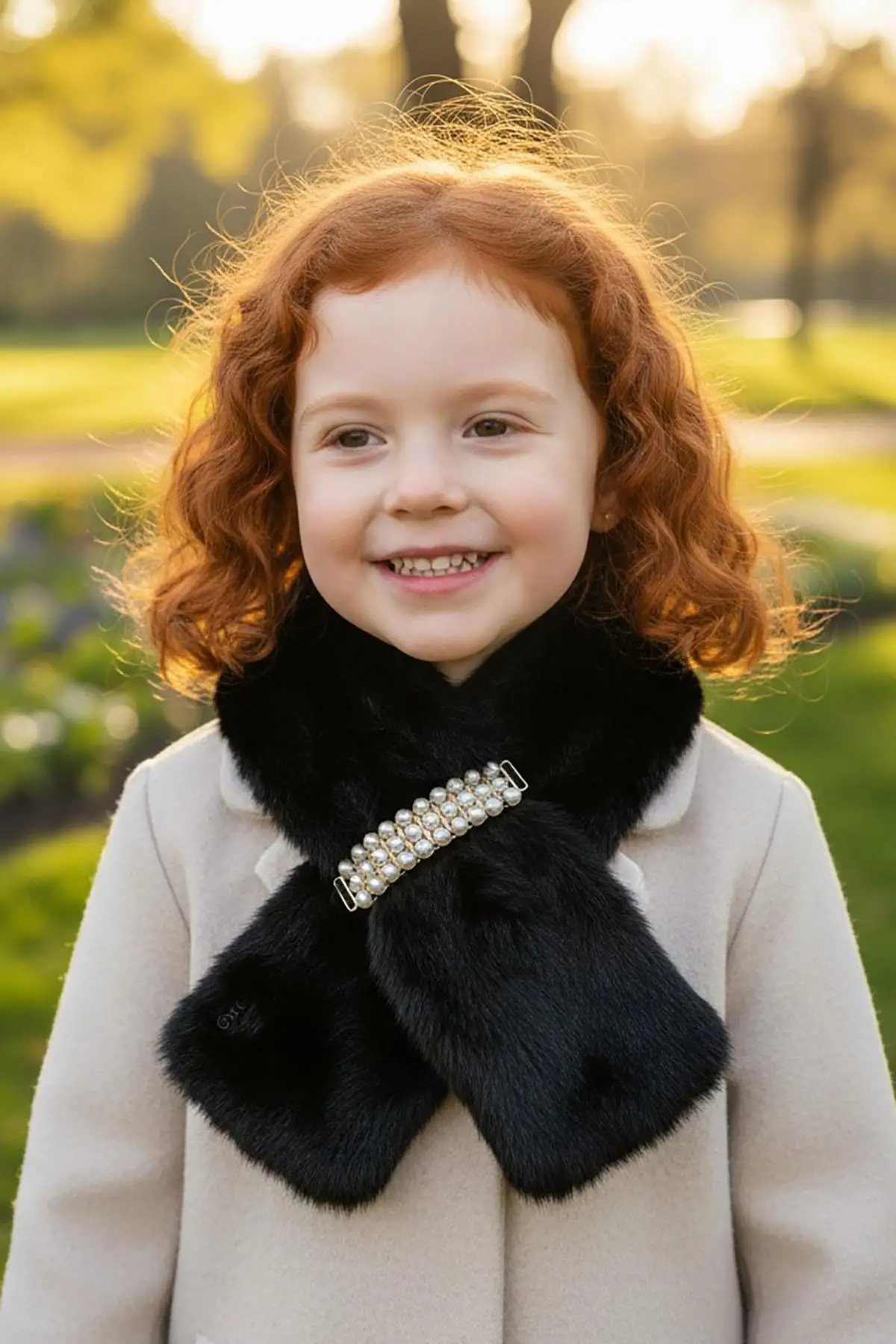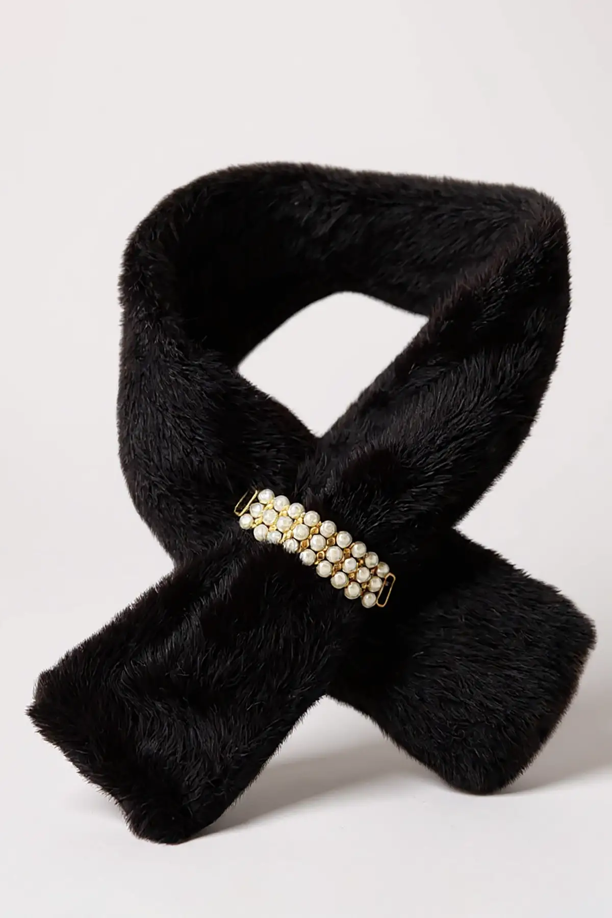 Siyah Renk İnci Detaylı Çocuk Peluş Atkı