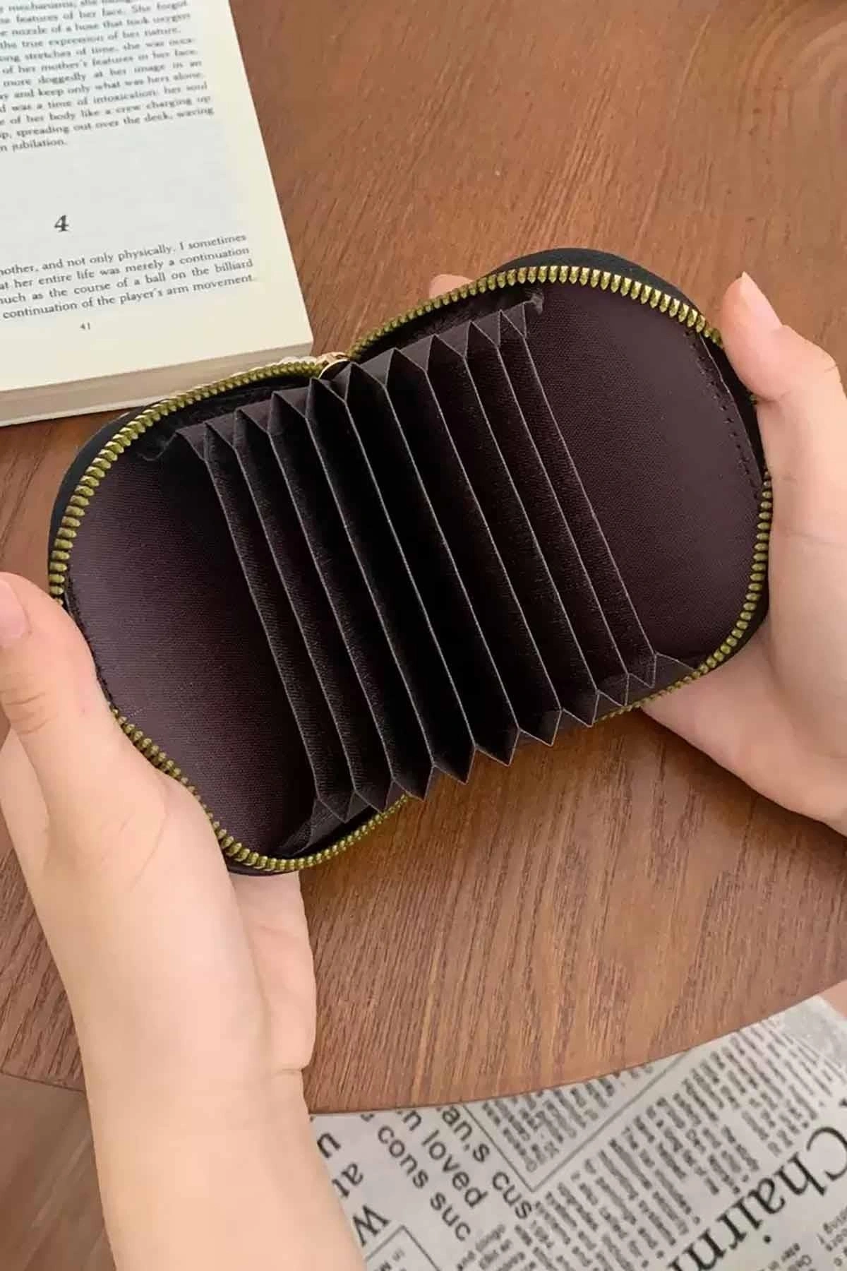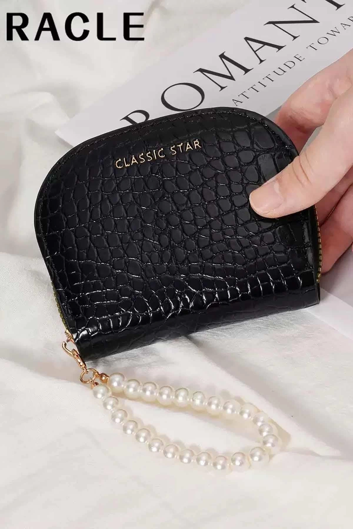 Siyah Renk İnci Detaylı Deri Kadın Cüzdan/Kartlık