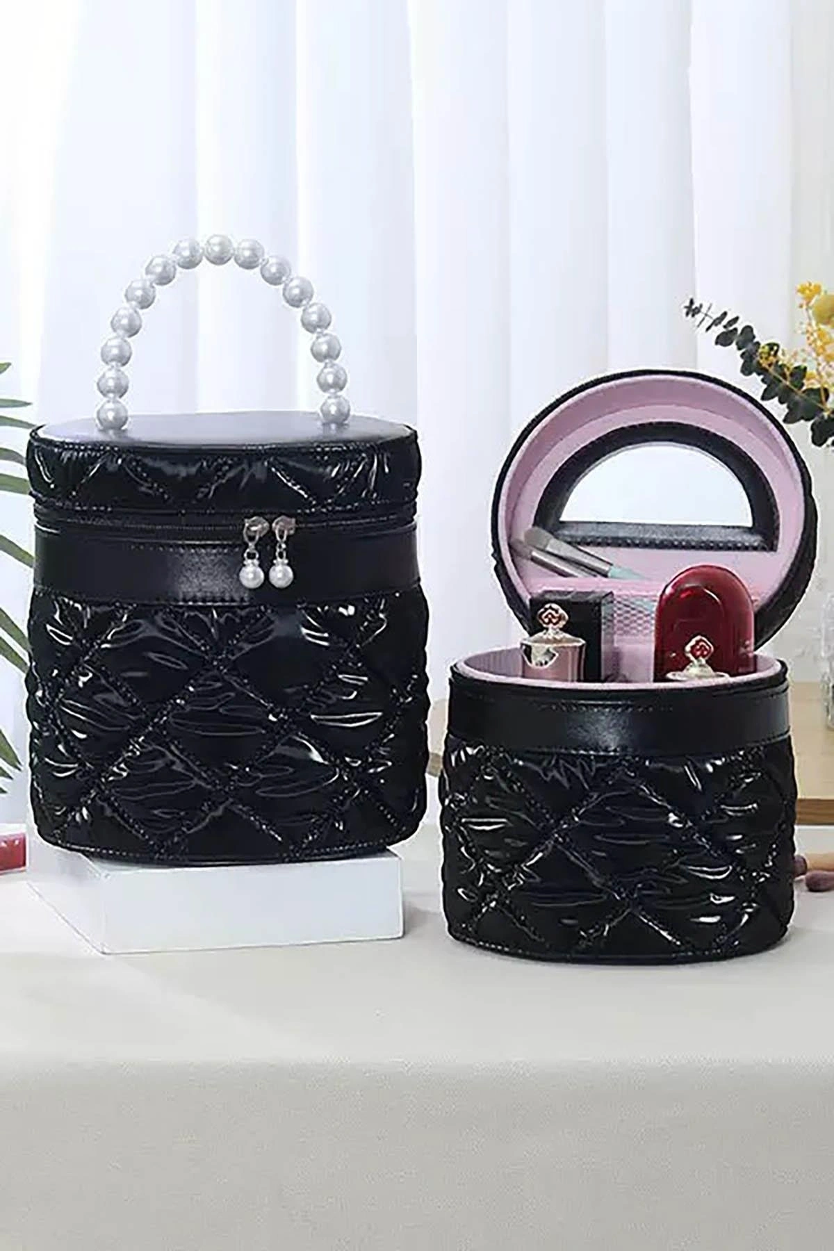Siyah Renk İnci Detaylı Makyaj Ve Kişisel Bakım Çantası