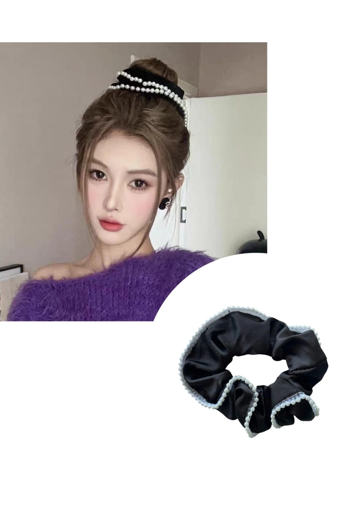 Siyah Renk İnci Detaylı Simit Toka