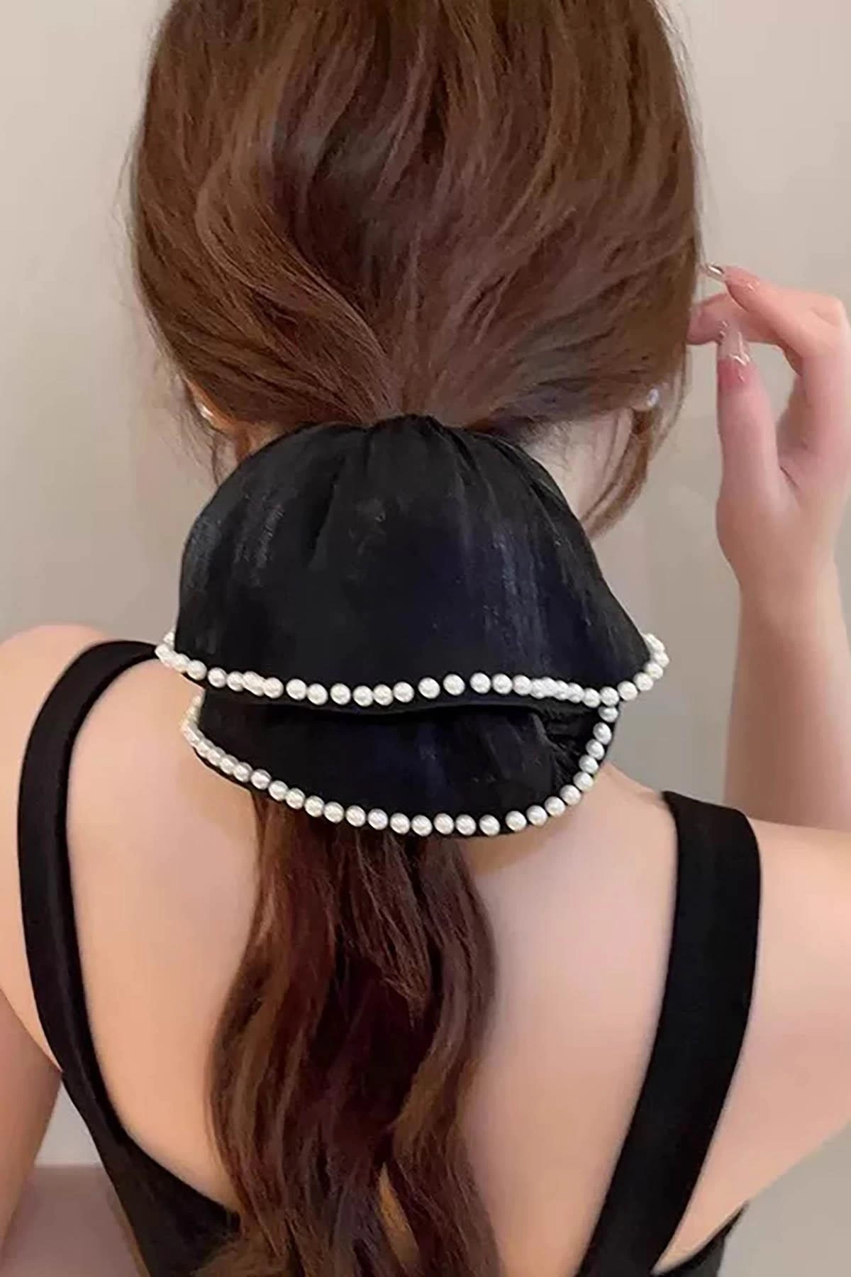 Siyah Renk İnci Detaylı Simit Toka