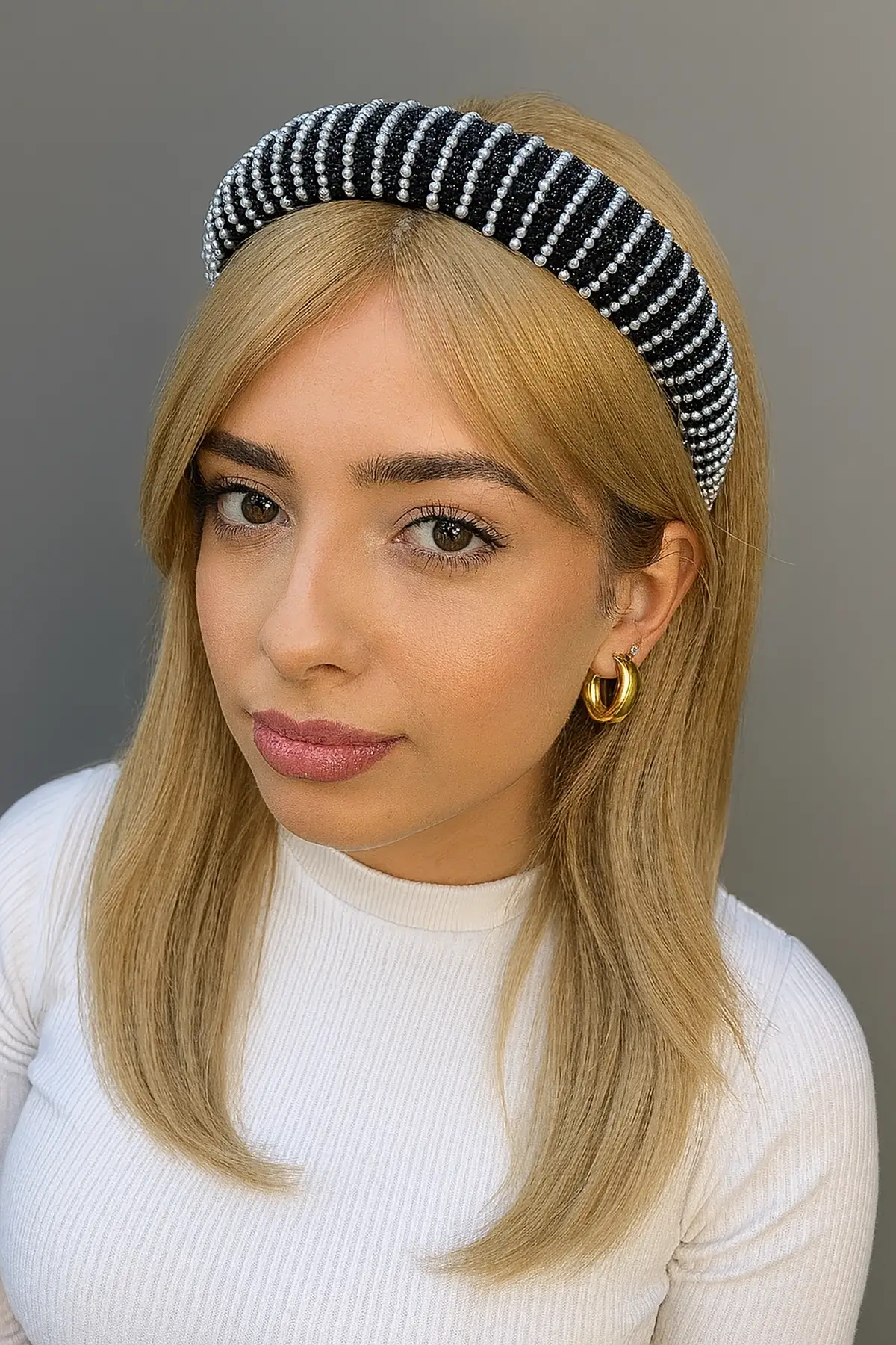 Siyah Renk Taş Ve İnci Detaylı Taraklı Taç