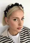 Siyah Renk Taş Detaylı Büzgülü Taç