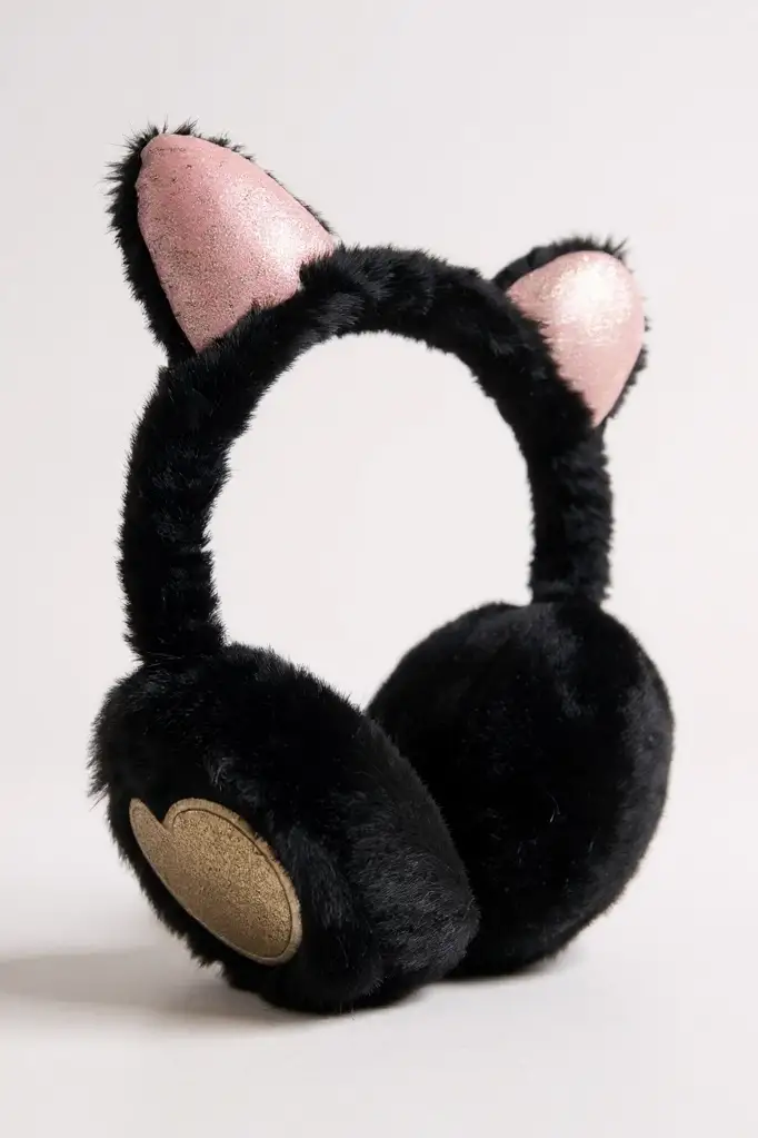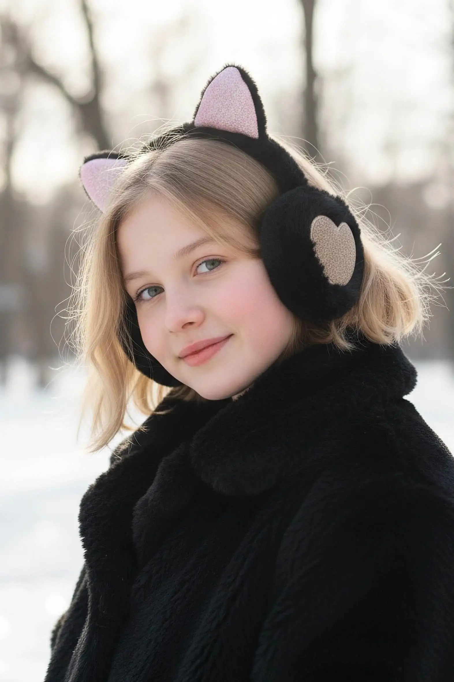 Siyah Renk Kalp Figürlü Kulaklı Çocuk Peluş Kulaklık