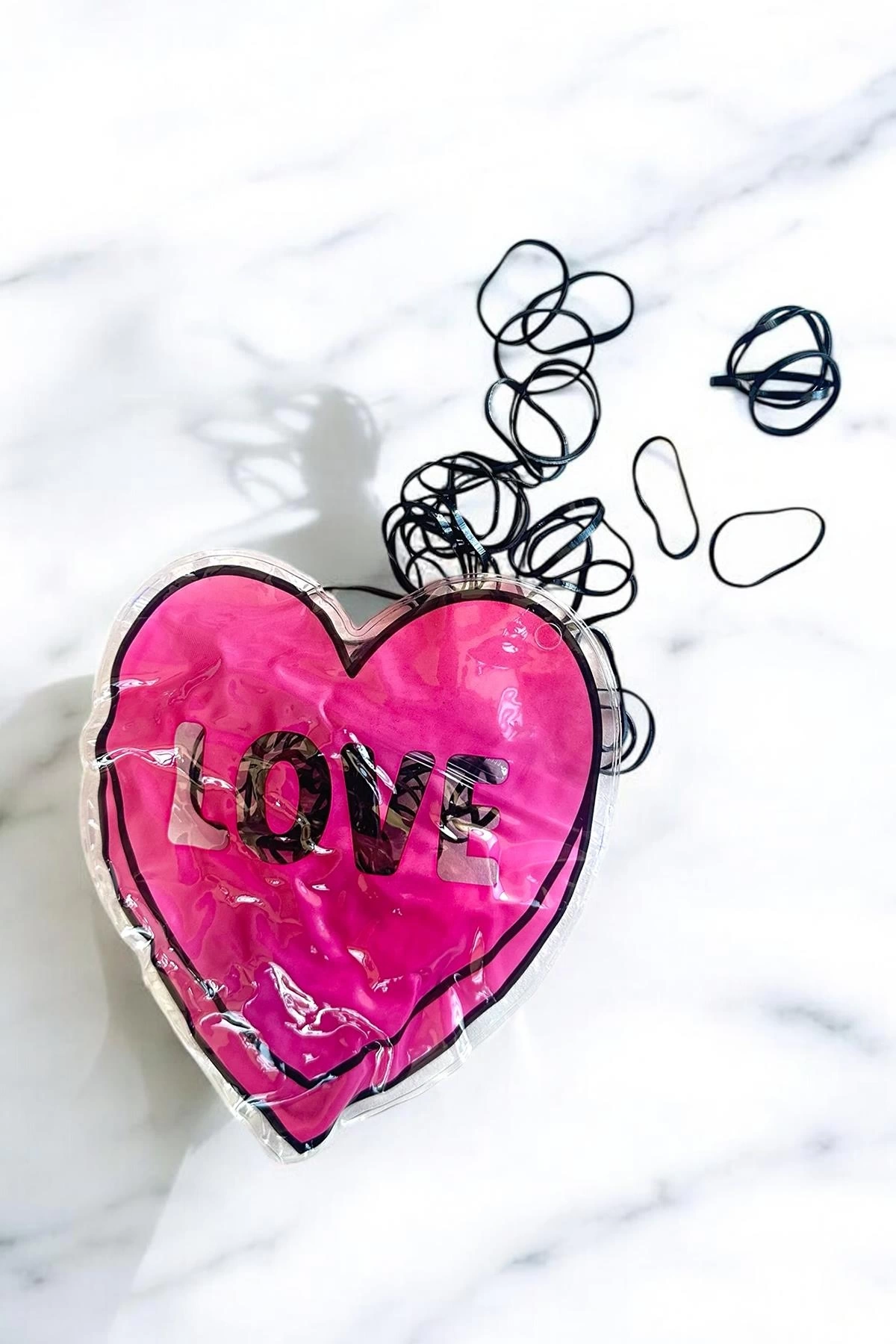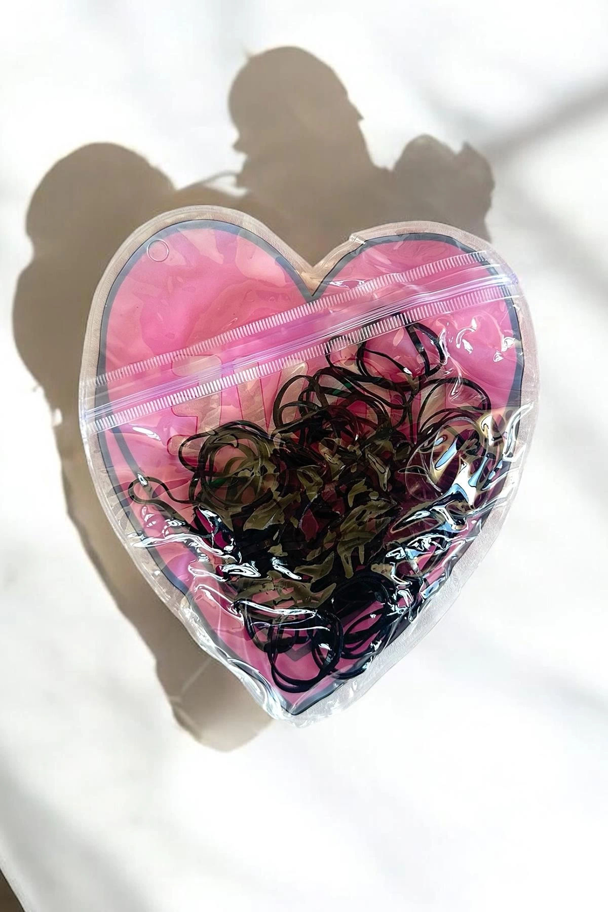 Siyah Renk Kalp Figürlü Perma Paket Lastik Toka