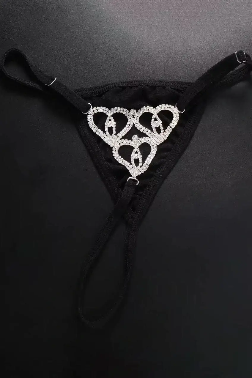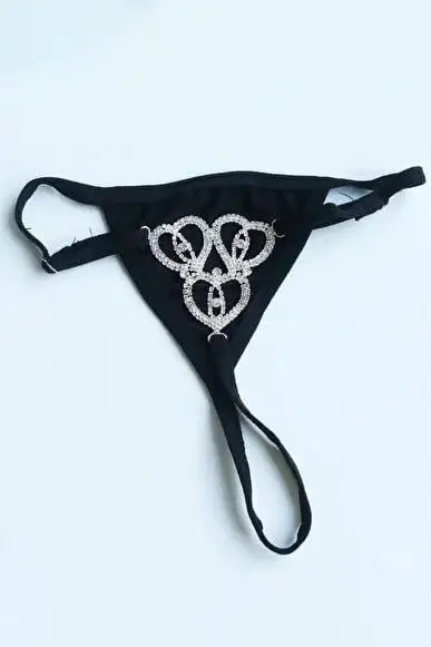 Siyah Renk Kalp Figürlü Taş Detaylı Tanga