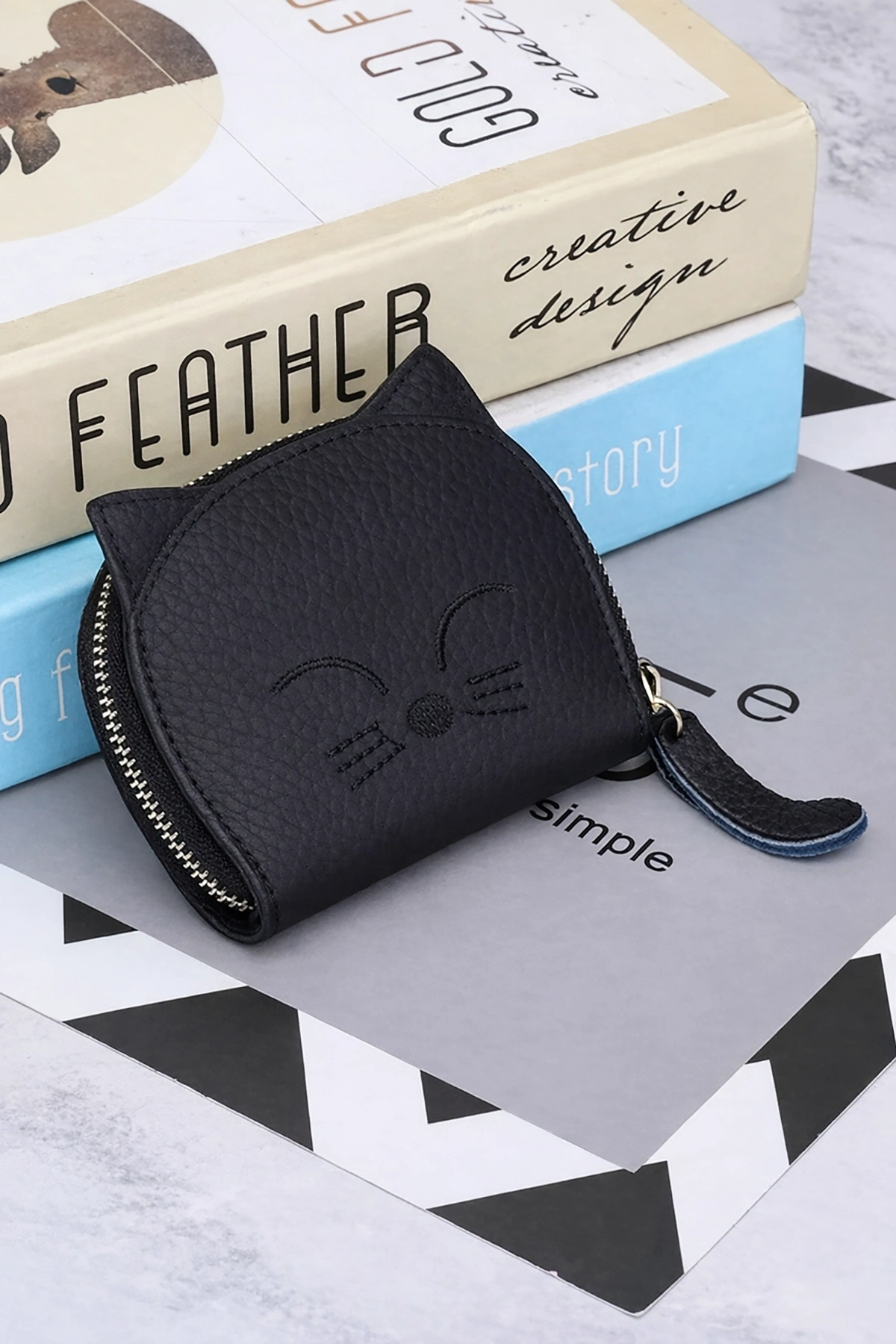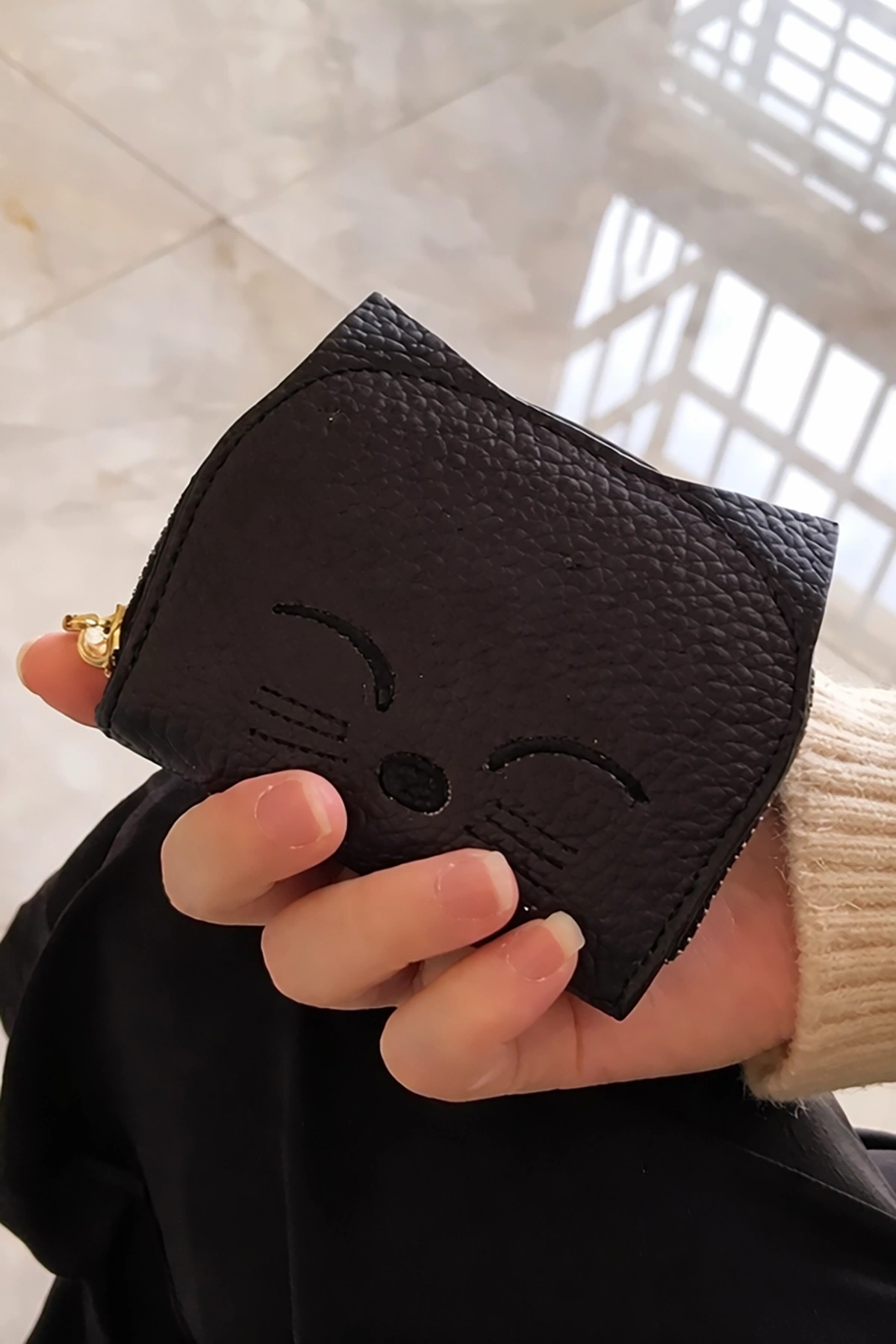 Siyah Renk Kedi Figürlü Cüzdan/Kartlık