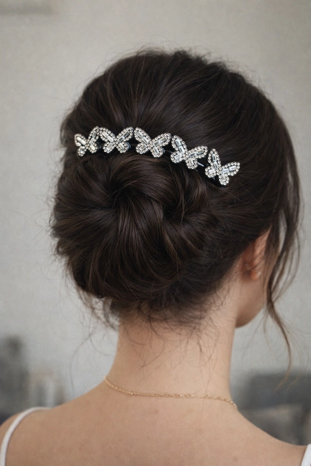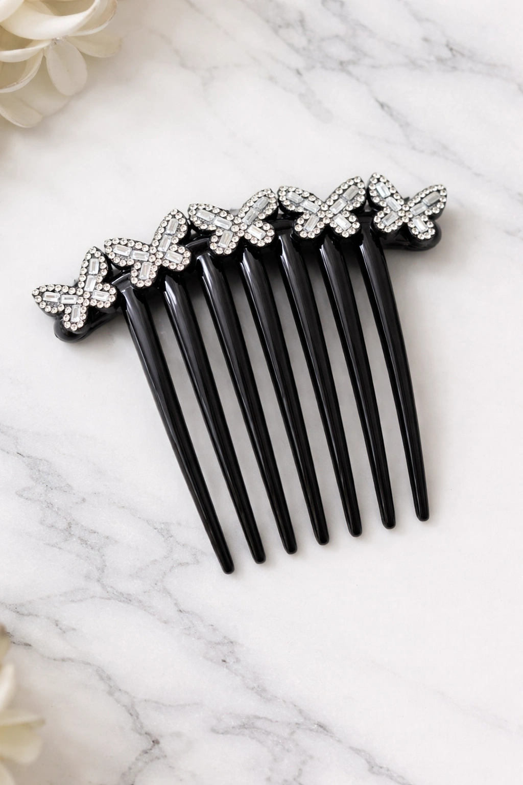 Siyah Renk Kelebek Figürlü Taş Detaylı Tarak Toka